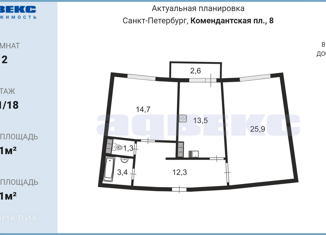 Сдается квартира студия, 24 м2, Комендантская площадь, 8