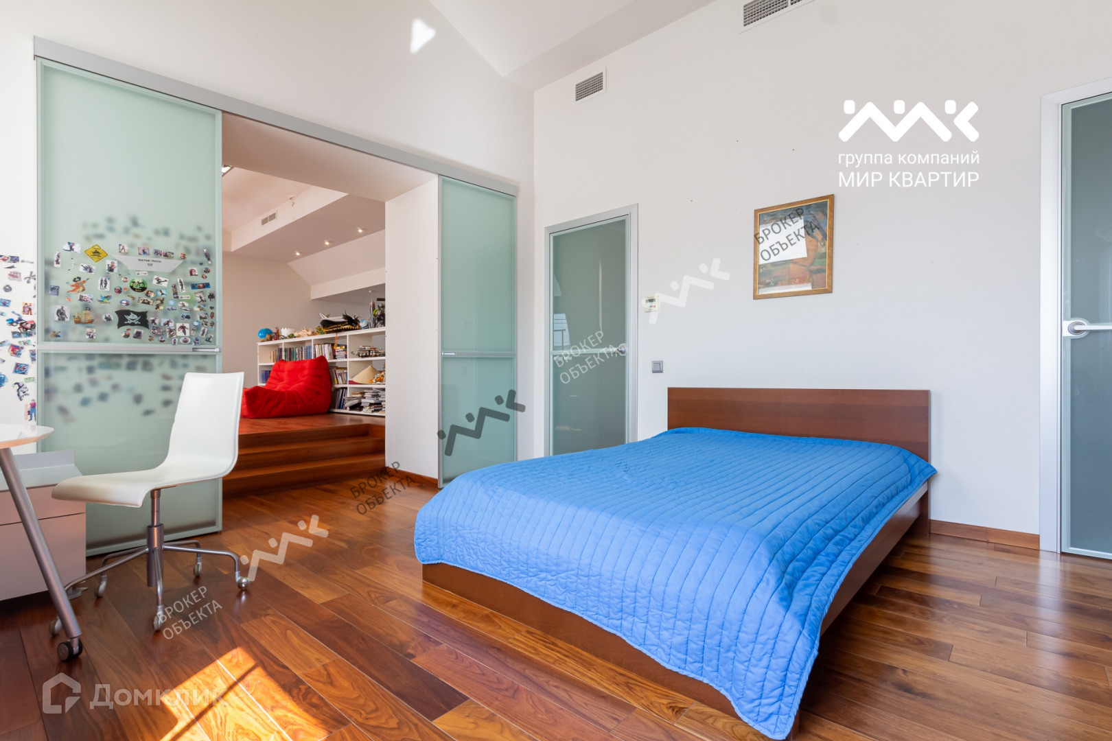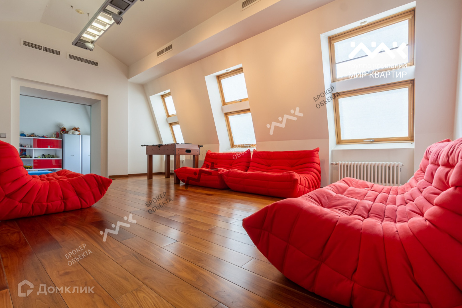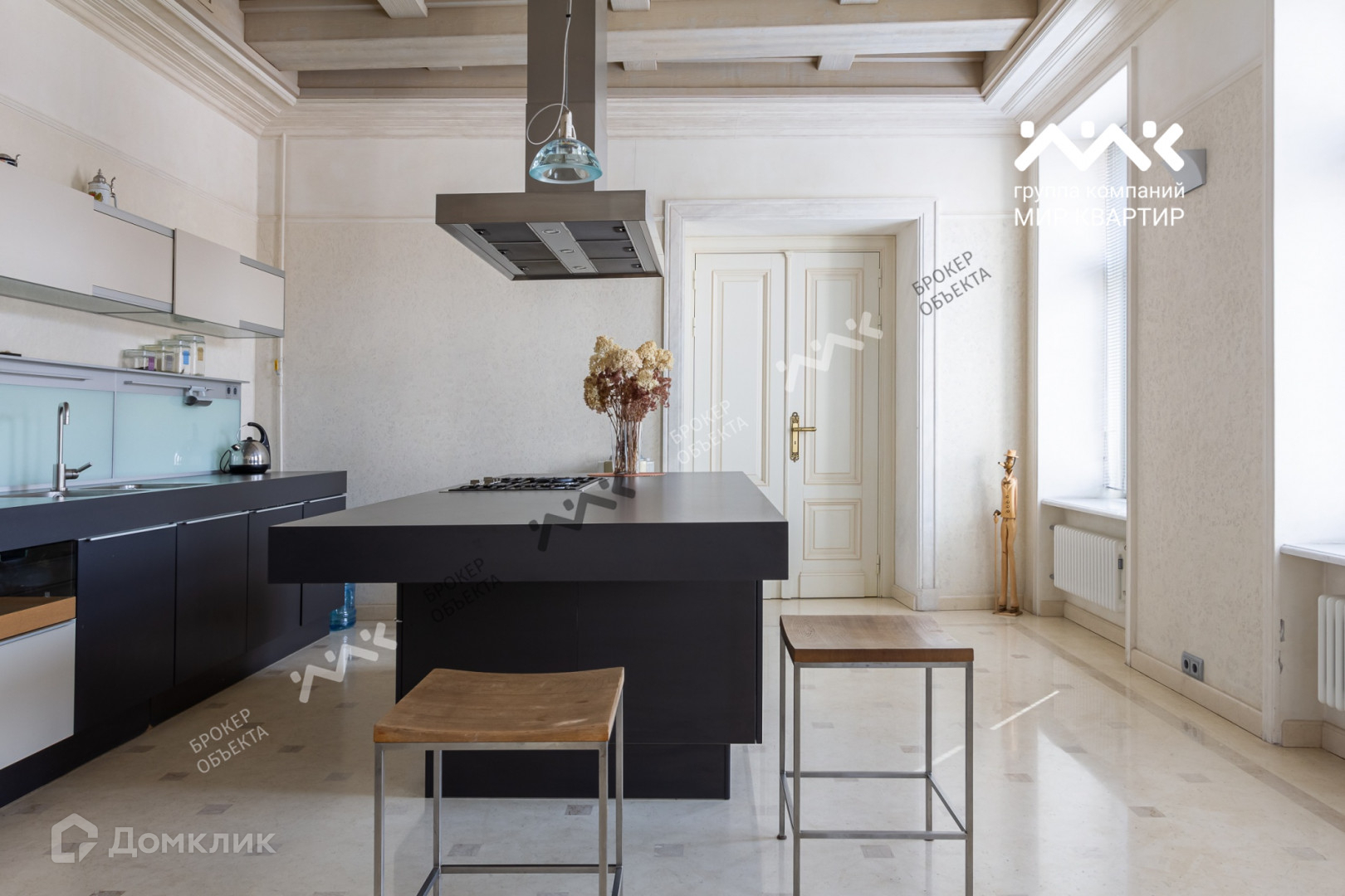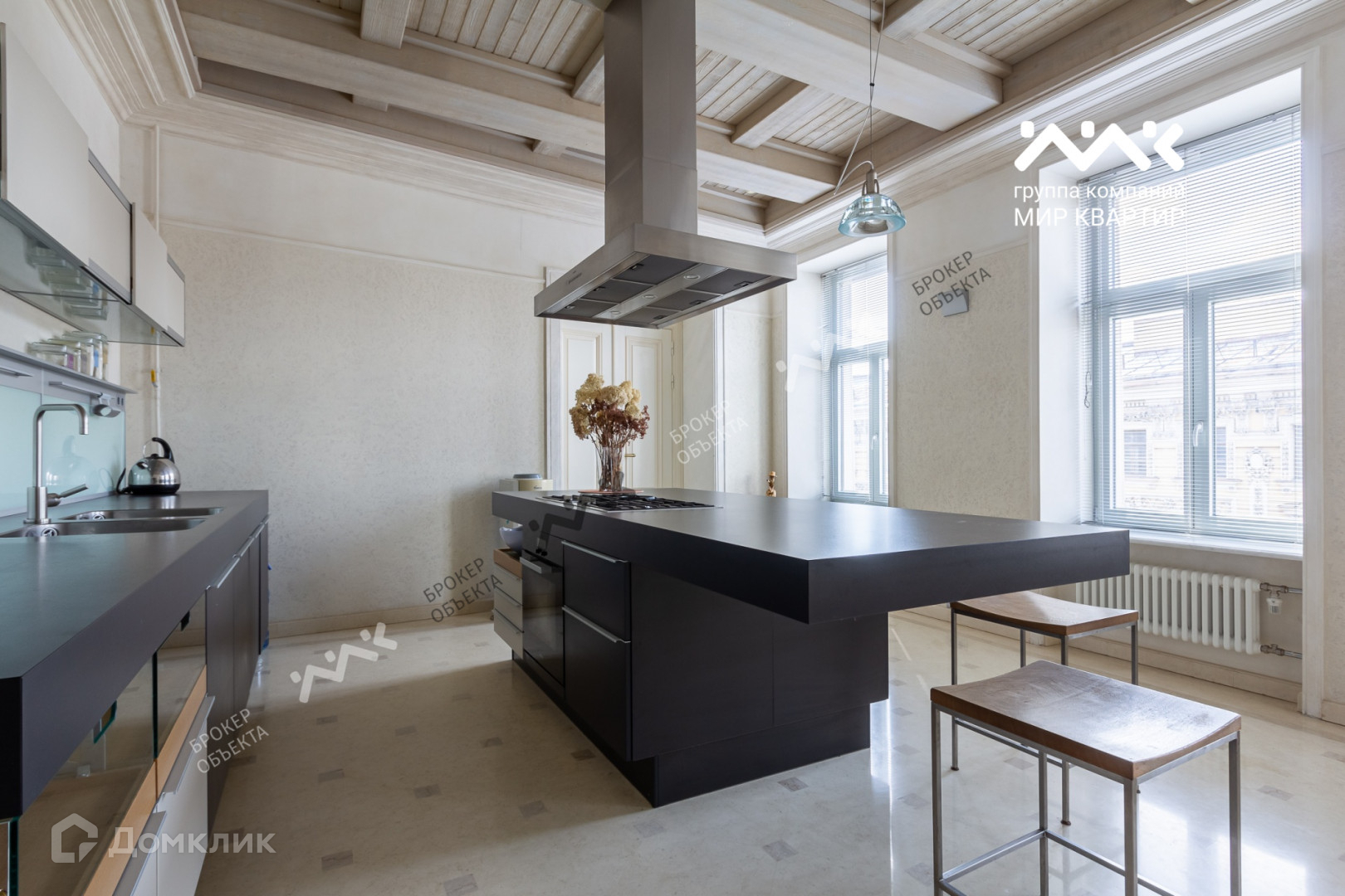 Квартира занимает два последних этажа. На общей площади 335 м2 комфортно расположились два уровня. Войдя в квартиру Вы попадаете в просторный холл из которого анфиладная планировка  ведет в наполненную светом гостиную, далее в столовую с выходом на балкон и просторную дизайнерскую кухню в исполнении Poggen Pohl. А так же в первую спальню со своим сан.узлом. Далее легкая лестница ведет на второй уровень в современное и воздушное мансардное пространство, где расположилась библиотека, детская спальня со своим сан.узлом и основная спальня с панорамными окнами, сан.узлом и гардеробом. Технические характеристики квартиры автономны, установлена собственная котельная, фильтры воды, приточно-вытяжная вентиляция. Бытовая техника ведущих производителей Miele, Bang & Olufsen.