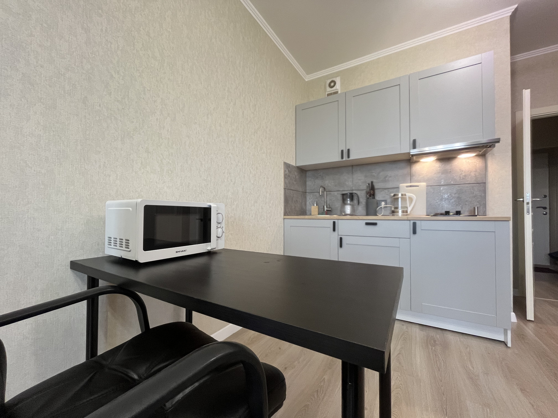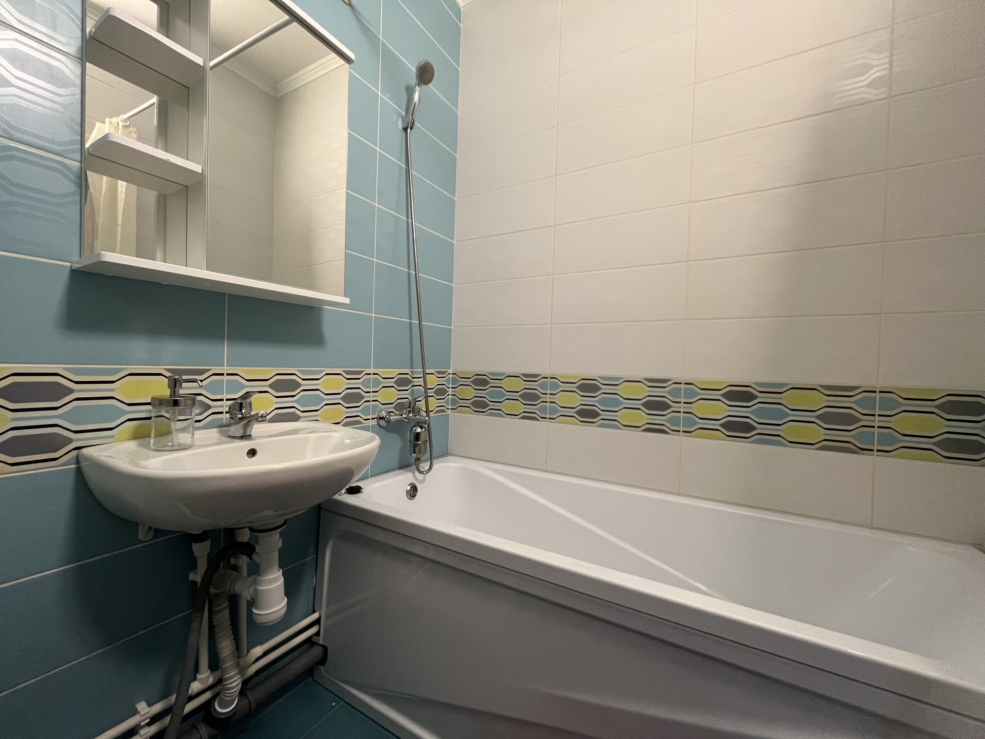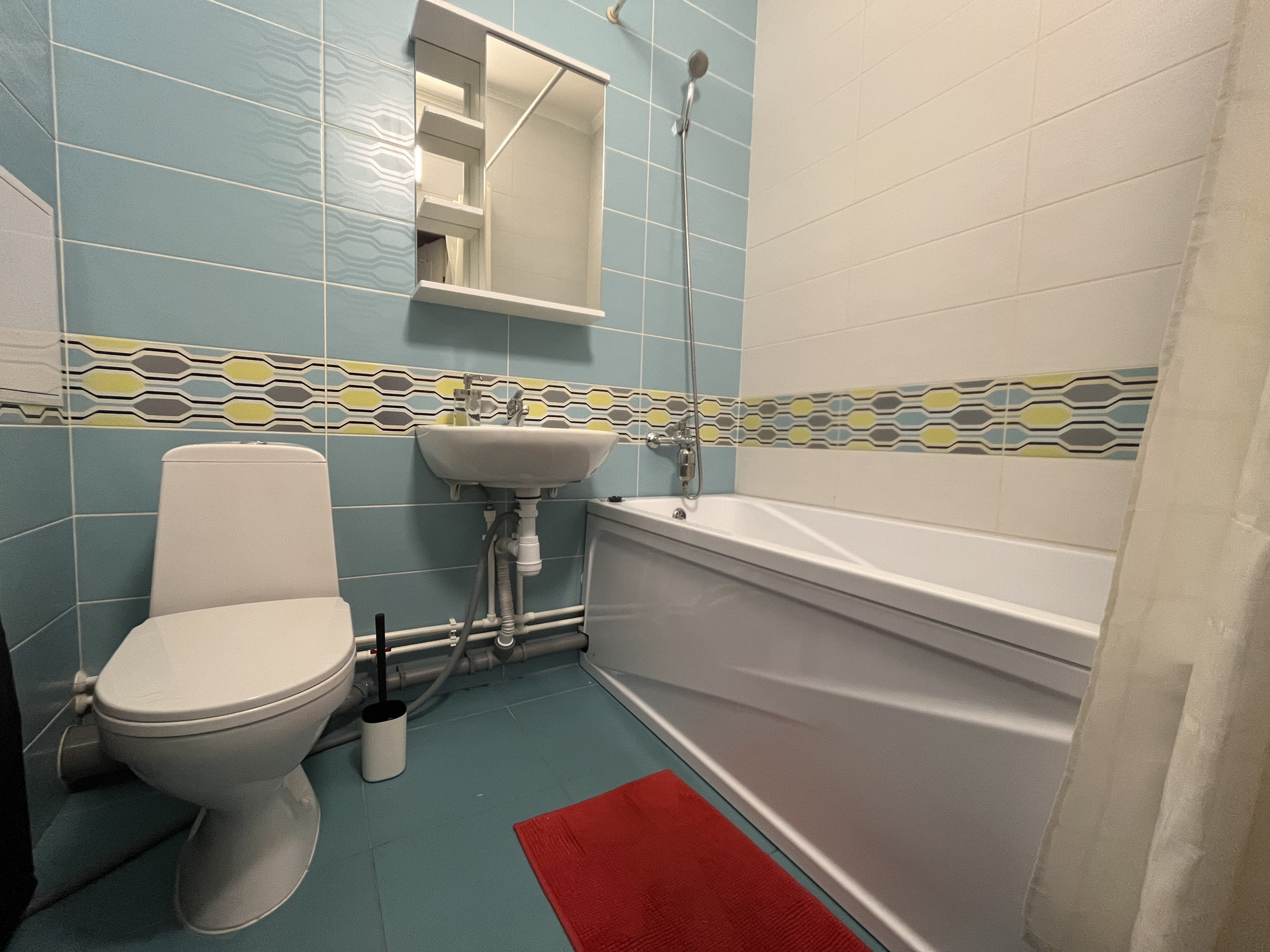 Квартира с полной отделкой и мебелью, установлена кухня с плитой, раковина, диван раскладной двухместный, рабочий-кухоный стол, холодильник, газетный столик, шкаф для вещей и вешалка в прихожей. Сан. узел выложен плиткой, стиральная машинка, ванная, объединен.