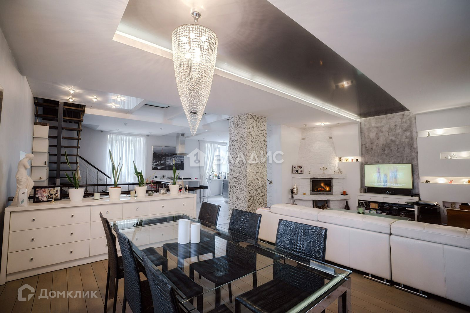 Квартира располагается на 4 уровнях; 1 этаж прихожая, 2 этаж -открытое пространство, делится зоны, кухня, гостиная с камином , столовая , санузел , 3 этаж -мансарда, 2 спальни с 2х спальными кроватями , комната -гардеробная, и большая ванная комната с гидромассажной ванной.