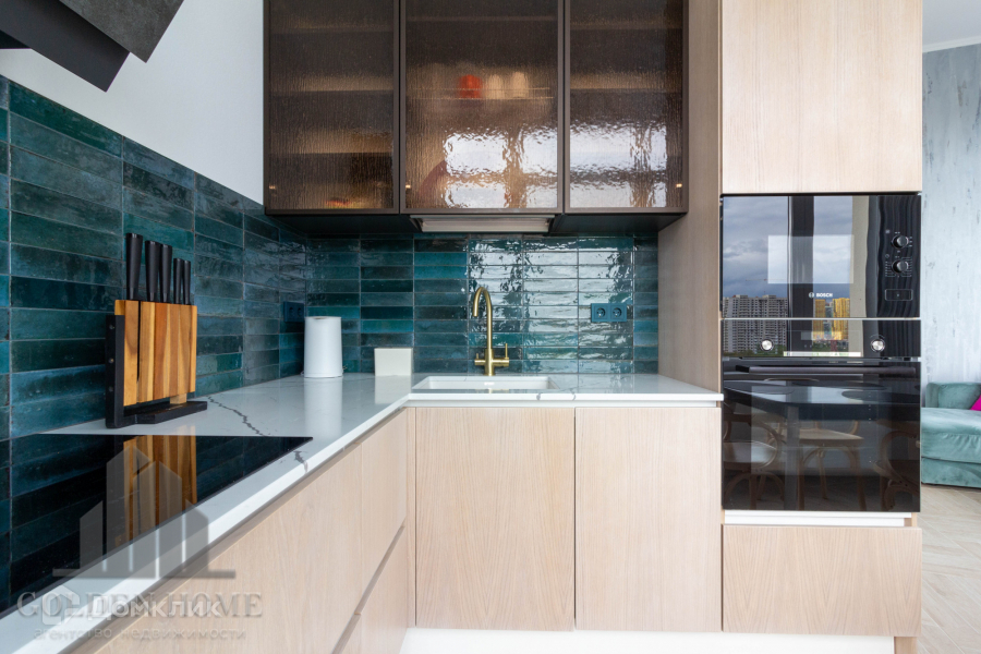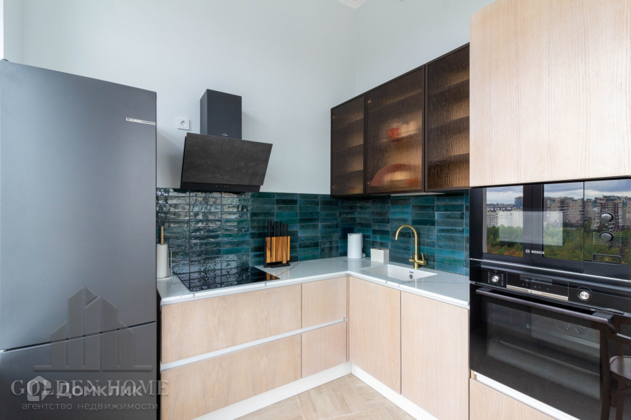 Эргономичная кухня оборудована всей необходимой бытовой техникой.