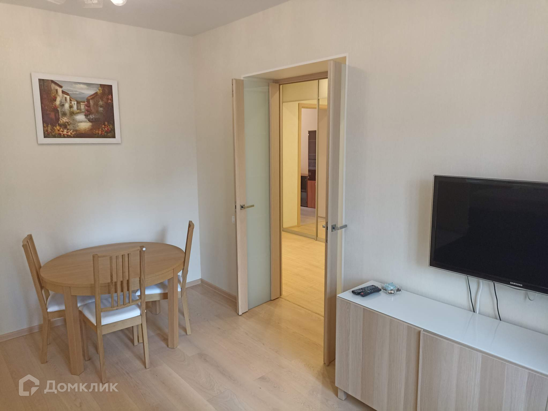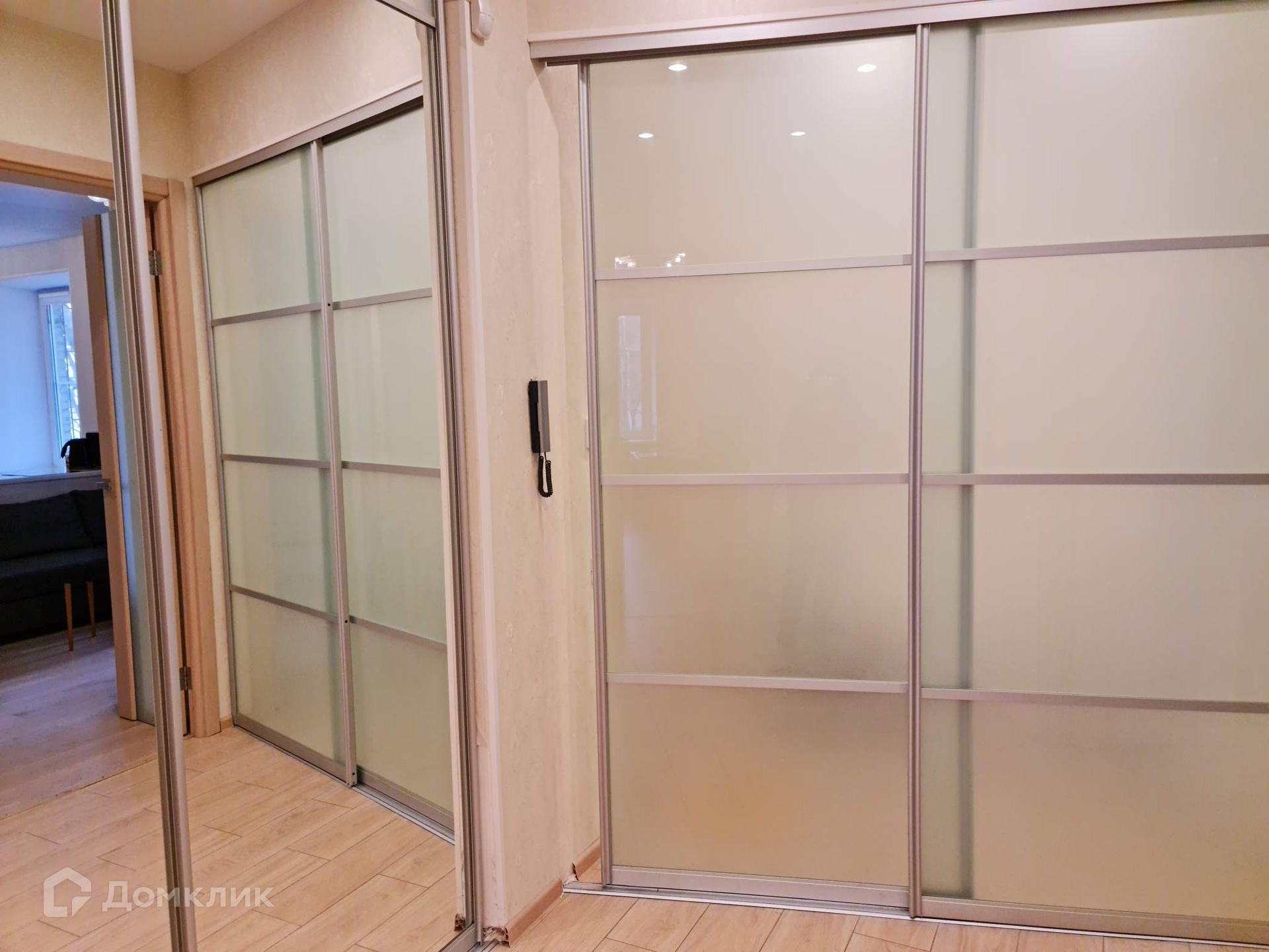 На полу ламинат, входная дверь двойная, балконов - нет, лоджий - нет.