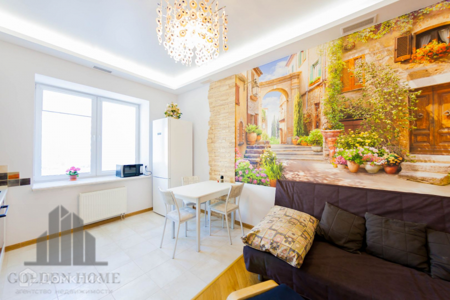 Имеется вся необходимая бытовая техника, включая посудомоечную машину, и мебель.