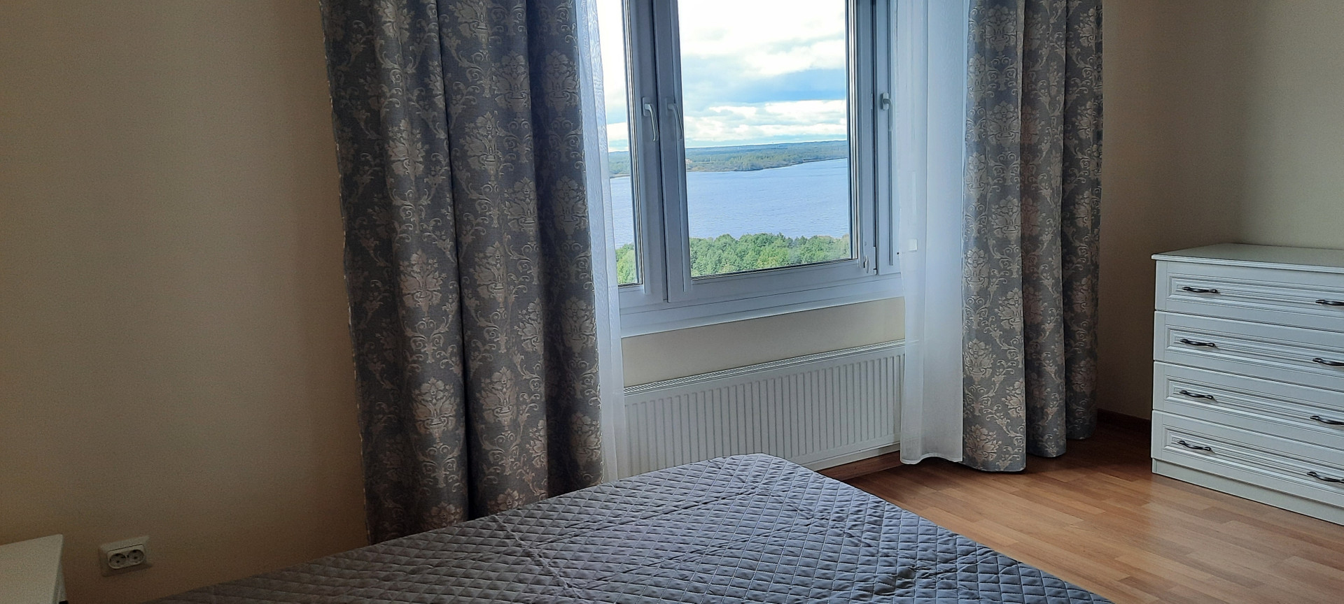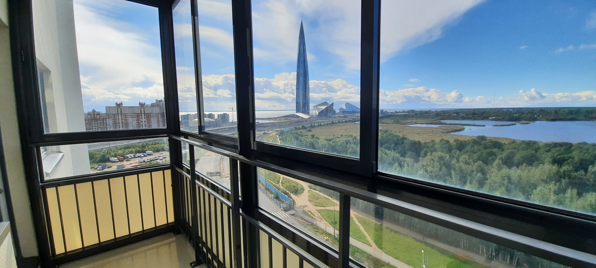 Сдается видовая  трехкомнатная квартира в ЖК ''Vita Nova'' от финского застройщика ЮИТ. Из всех окон квартиры открывается  потрясающий вид на Лахта-центр и Юнтоловский заказник с озерами. В квартире две просторные спальни,  гостиная, кухня 17м. кв., застекленная лоджия, гардеробная, два санузла.  Окна на юго-запад, квартира  очень светлая и теплая.