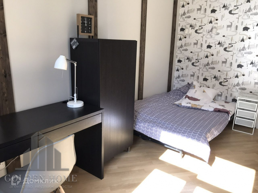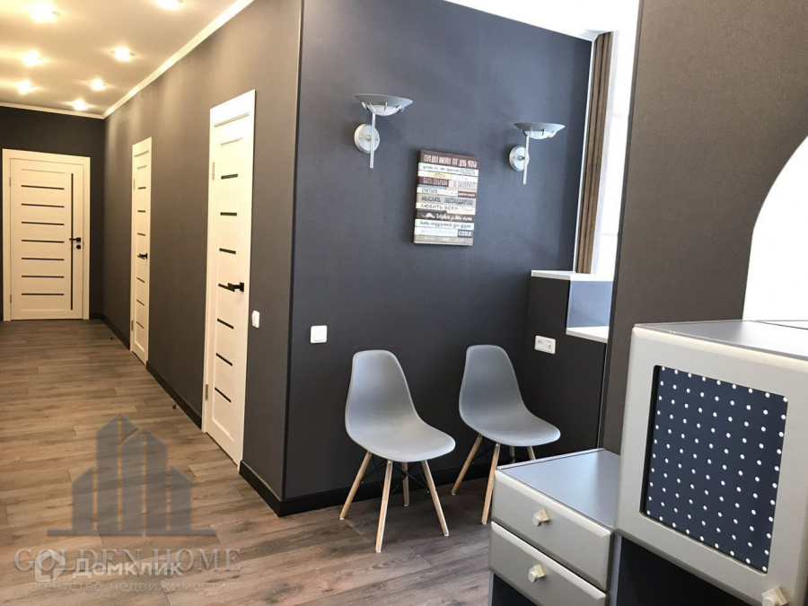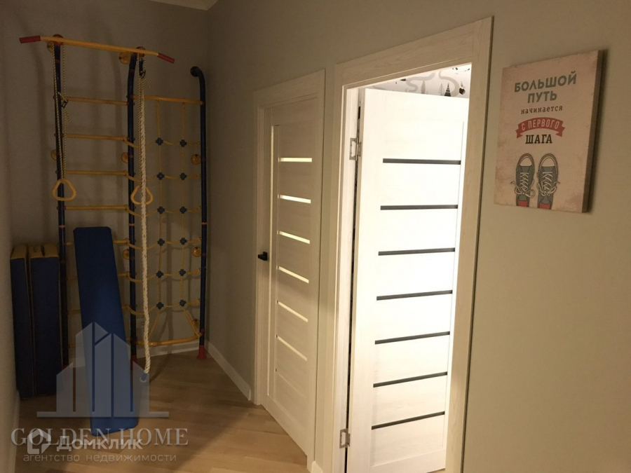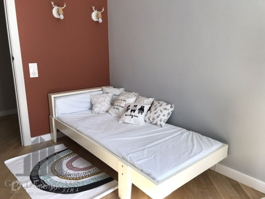 Благодаря грамотной планировке, квартира очень комфортная и удобная. Две изолированные спальни. Спальня большая в конце коридора. Спальня за распашными дверьми, при открытии объединяется с кухней. Отдельная гардеробная, вход из коридора. Отдельное помещение со спортивным уголком.