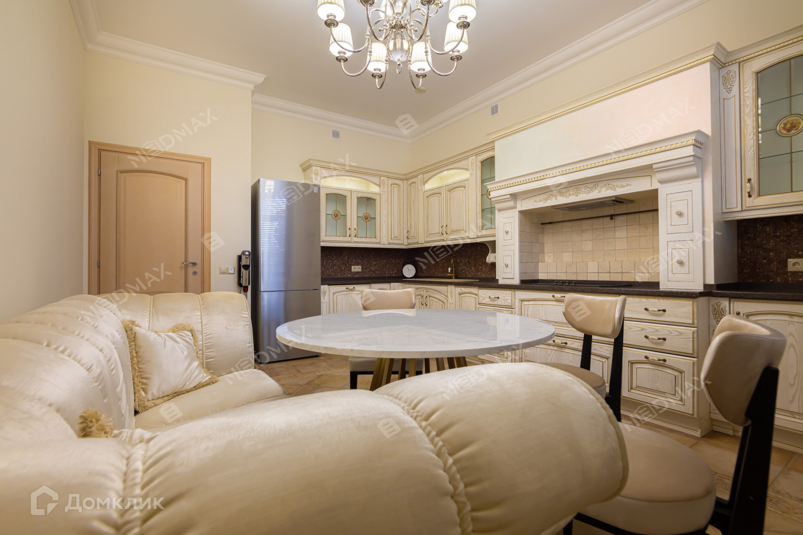 В отделке квартиры использованы дорогие отделочные материалы, вся техника и мебель импортные. Только что сделан свежий ремонт.