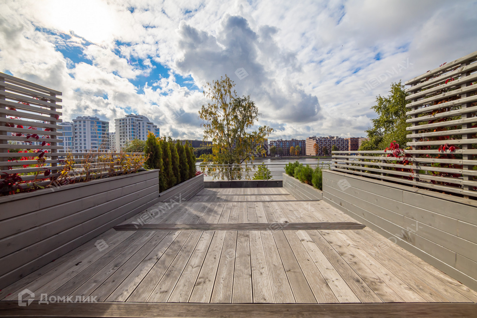Выход на собственную просторную террасу с видом на Малую Невку.