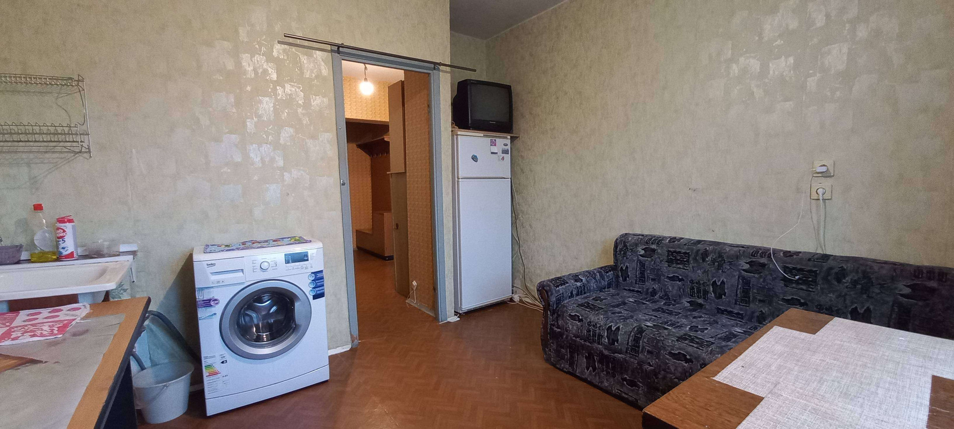 Квартира действительно классной площади - комната 23 кв м, кухня квадратной формы 12 кв м. Есть балкон, просторная прихожая. Квартира меблирована, есть необходимая техника, всё в рабочем состоянии.