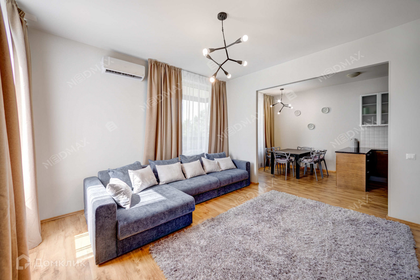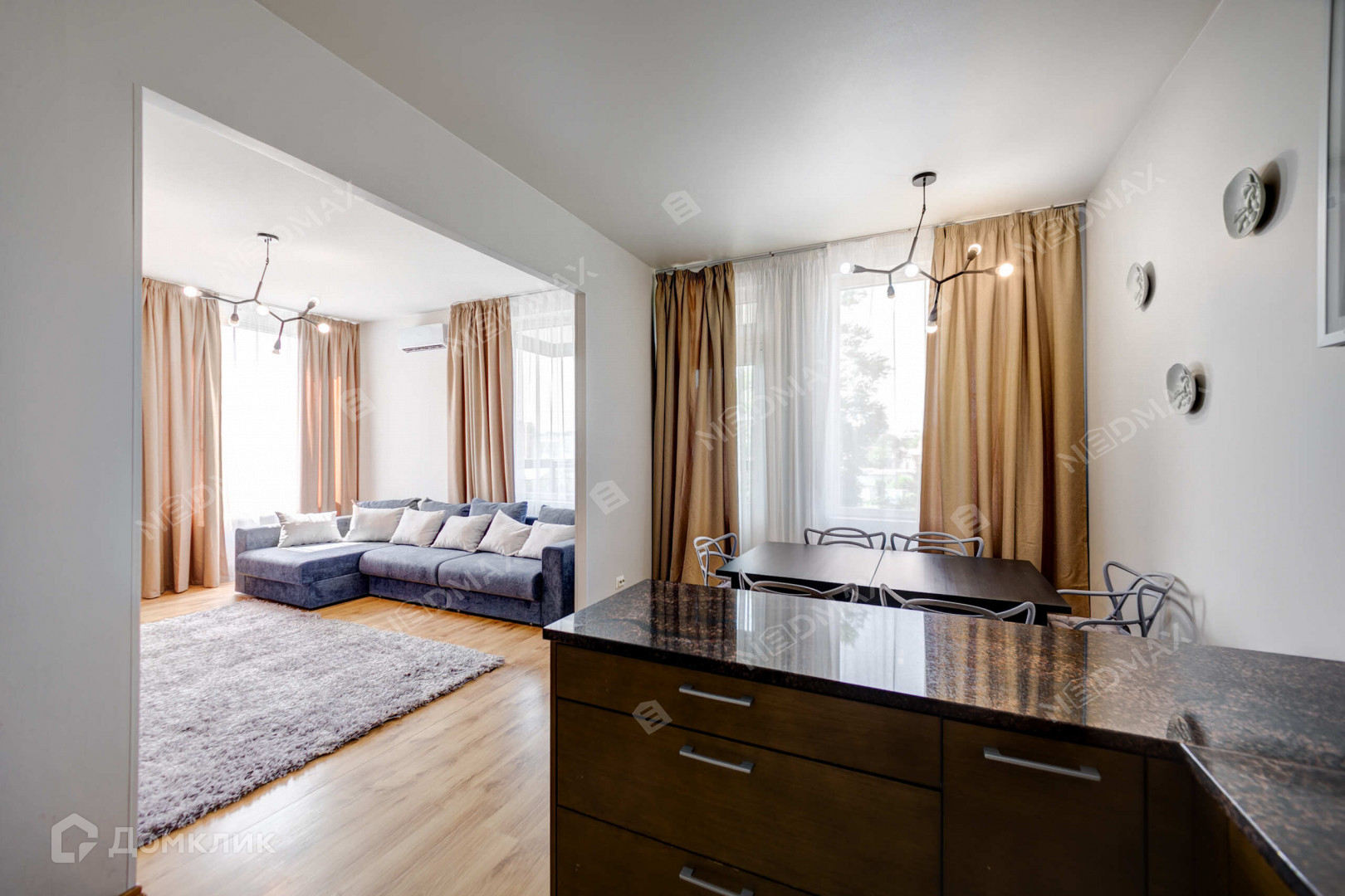 В квартире сделан качественный ремонт. Отдельная кухня со всей необходимой техникой, в том числе и посудомоечной машиной. Просторная гостиная, 3 спальных комнаты, одну из которых можно использовать как детскую/кабинет/гостевую. Два санузла, Гардеробная/кладовая.