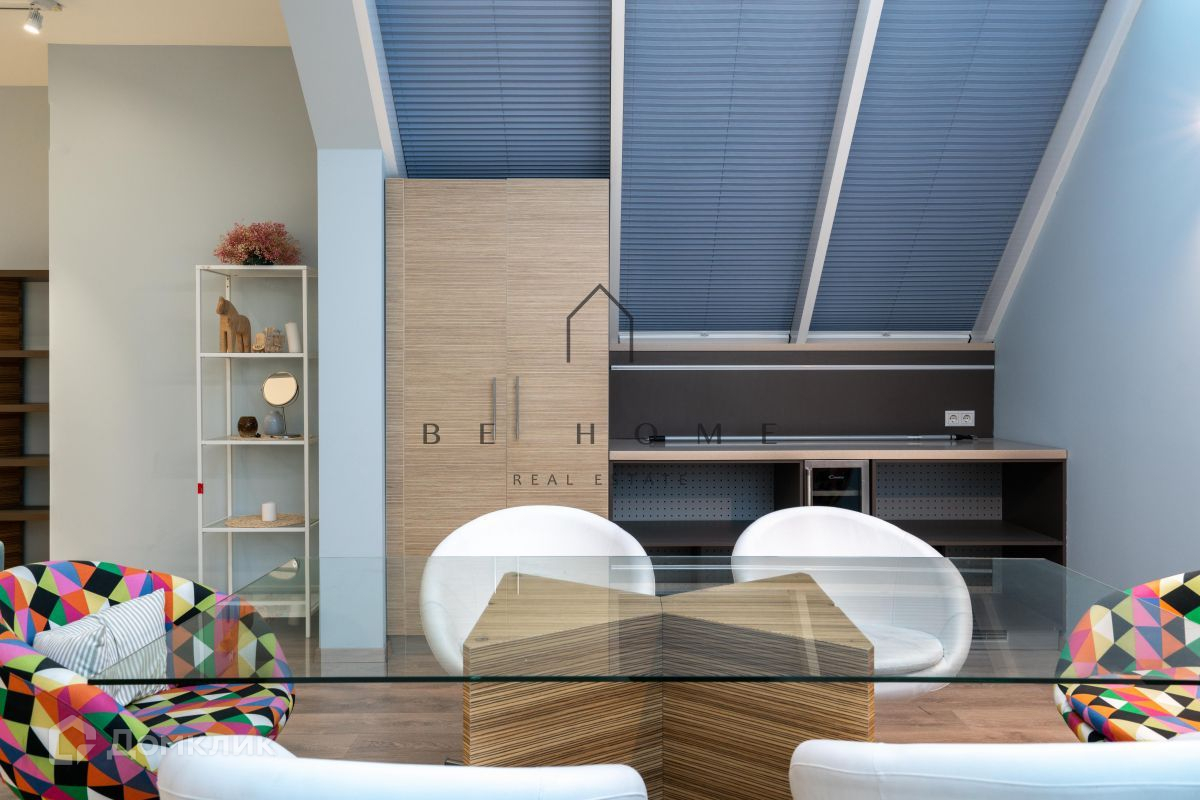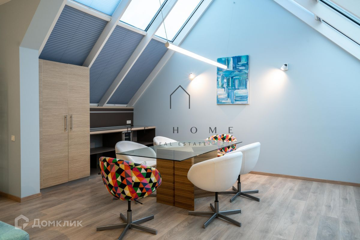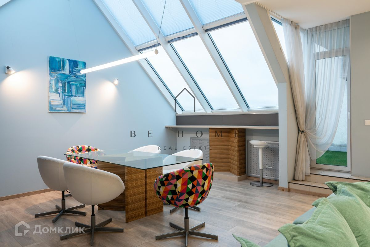 Три отдельные комнаты, гостиная с мансардными окнами и выходом на собственную террасу, кухня с балконом, ванная комната.