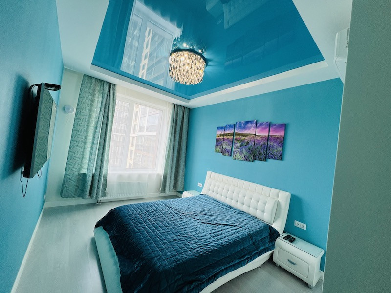 Мастер спальня со своим санузлом. Квартира полностью мебелированная и готова к проживанию, телевизор, стиральная машина, холодильник, посудомоечная машина, кондиционер. Оборудованная кухня. Отличный вид из квартиры.