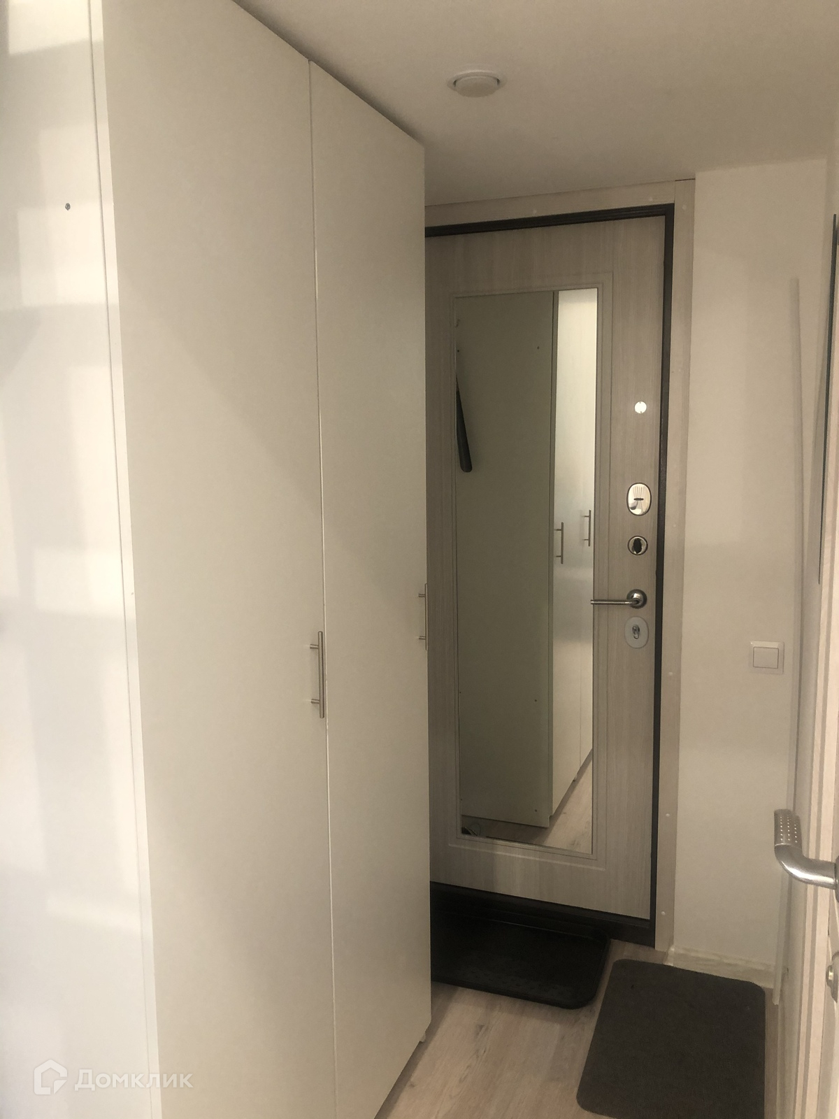 При входе - одёжный шкаф, есть большое Зеркало.