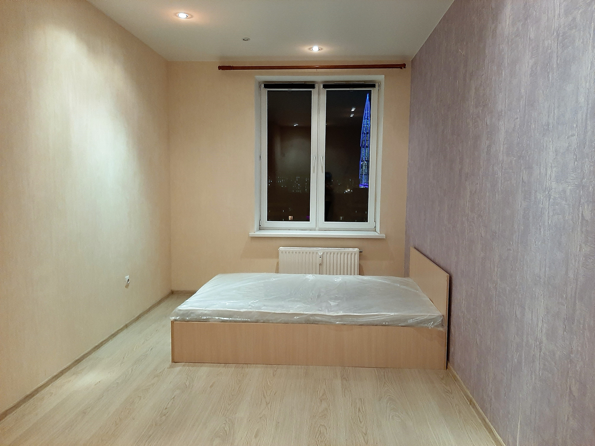 Собственник. Без комиссии.  ЖК Дом с курантами.  Огороженная охраняемая территория.  Охрана.  Элитный жилой комплекс.  Подземный паркинг. Общая площадь 34 метра.  Кухня 11 метров. Комната 16 метров. + 5 метров застекленная лоджия.  Стекло пакеты.  Квартира теплая.  Высокий этаж.  Красивый панорамный вид из окна.  Шикарный вид на Лахта центр.  Отличное состояние.  Хороший качественный ремонт. Вся необходимая мебель.  Просторная 2-х спальная кровать. Шкаф-купе.  Встроенная кухня. Стол. Стулья.  Большой 2-хкамерный холодильник.  Стиральная машина. Проведен интернет. + КУ, + свет. Залог 100 %, но можно в 2 этапа.   Возможен любой срок, от 1 месяца. Но, желательно, длительно.   Без животных. В квартире не курят.  Квартира от собственника. Без комиссии.