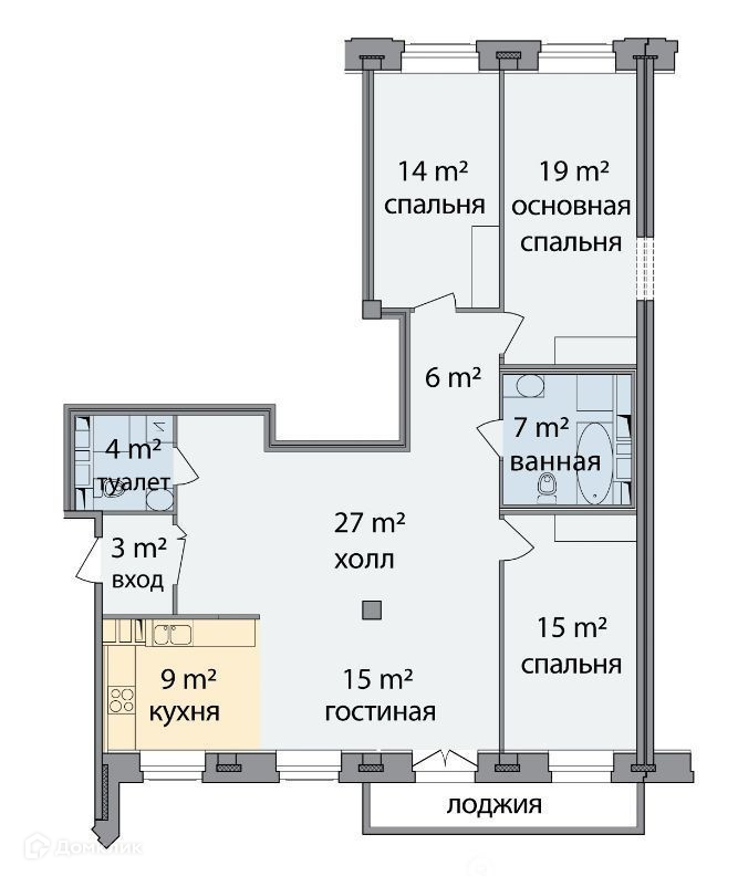 Общая площадь 124 м2