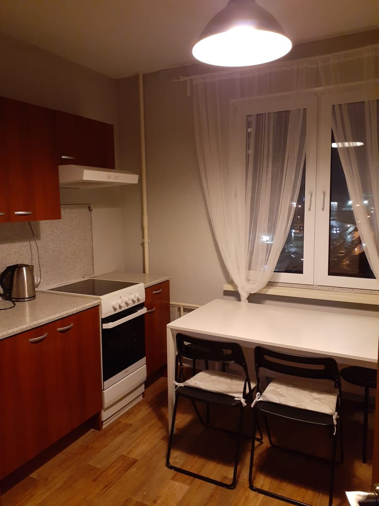 Общая площадь 39 метров, комната 20 метров, кухня 10 метров, плюс большая застекленная лоджия. В квартире выполнен евроремонт (2021год), есть вся необходимая современная мебель. Бытовая техника- стиральная машина, холодильник , электрическая плита (стеклокерамика) с духовым шкафом, электрический чайник, роутер. Есть новые гладильная и сушильная доски. Спальные места – два раскладных дивана. Квартира очень чистая, светлая, уютная. Окна выходят в большой тихий открытый двор с красивым видом на перспективу городской панорамы. Парадная чистая, после ремонта. Парковка свободная у дома. В пешей доступности парк, фитнес центр с бассейном, Леруа Мерлен, Ледовый дворец, много продуктовых супермаркетов.