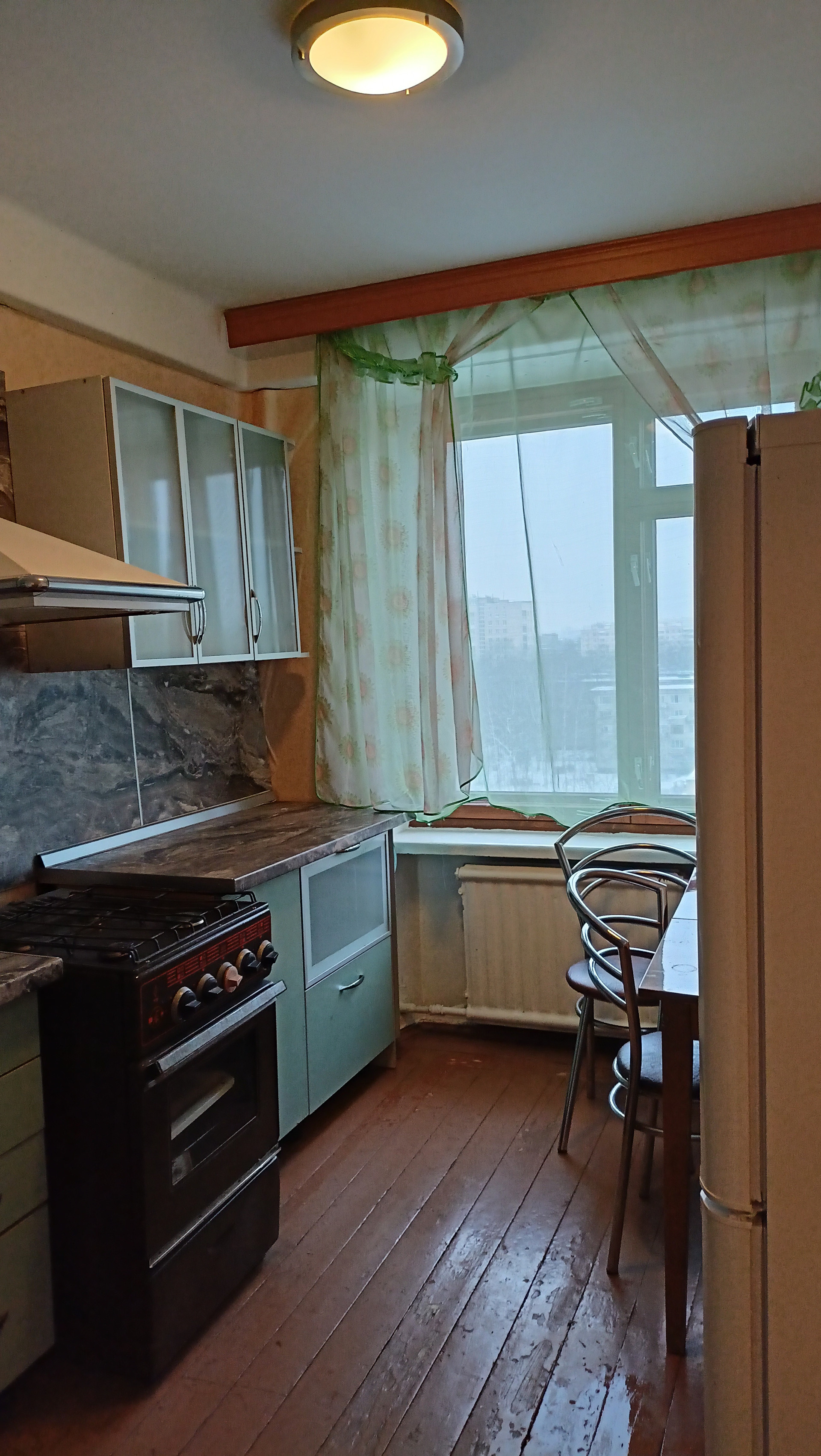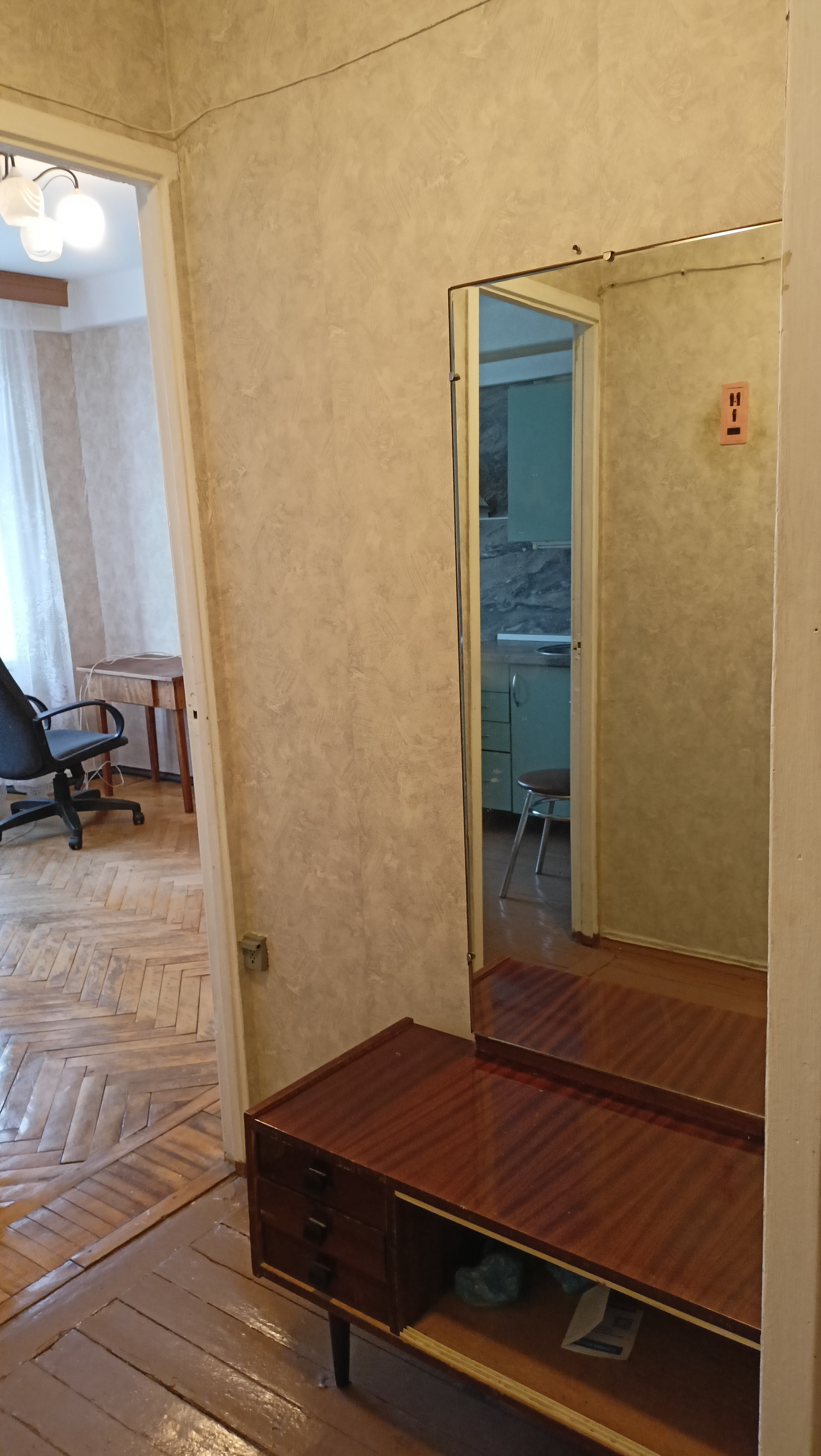 Сдаётся светлая тёплая квартира с кухней 8 метров на 9 этаже, все окна выходят во двор, санузел раздельный. В комнате два спальных места, шкаф.
