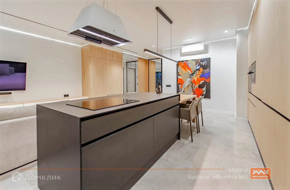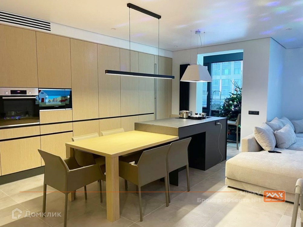 Просторная кухня-гостиная, много мест для хранения, качественная отделка и удобная планировка для семьи с детьми. Техника фирмы Bosh, робот-пылесос, функциональная кухня с задвижными фасадами, полностью скрывающими рабочую поверхность, отдельно стоящая ванна создают максимальный комфорт и удобство.