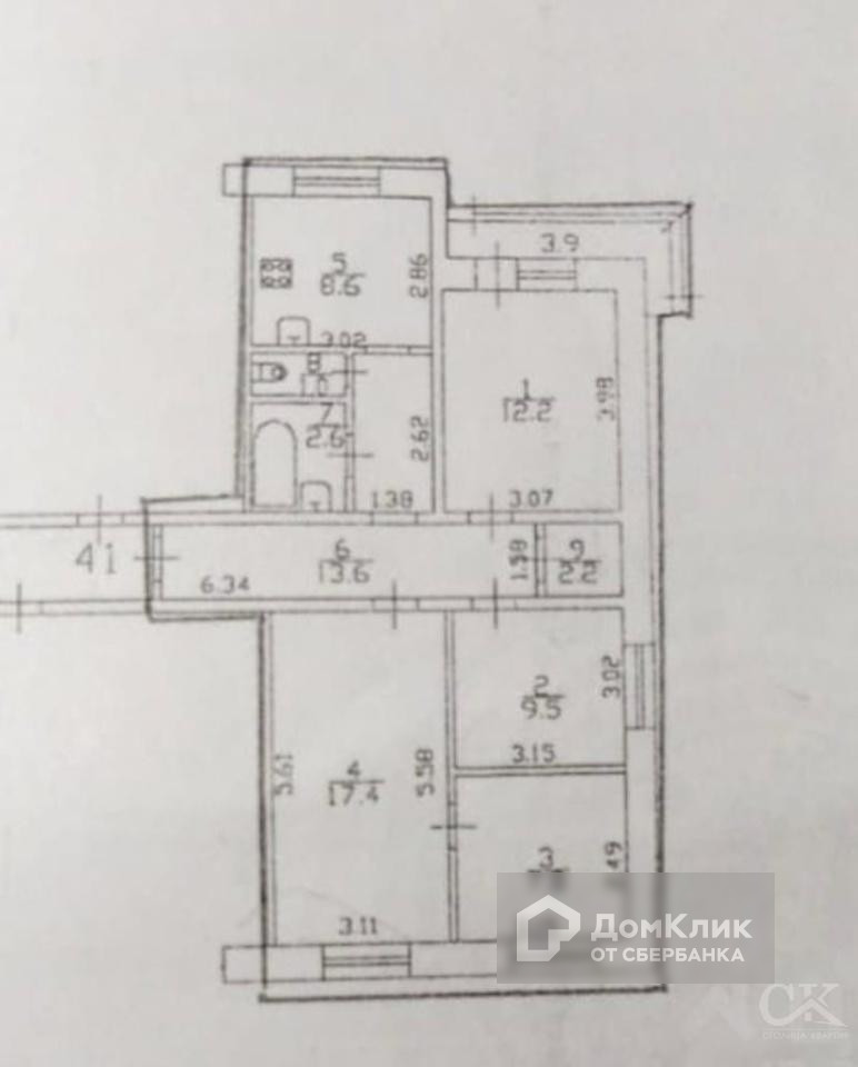 Общий метраж:74.9 м² Общая / 46.9 м² Жилая / 17.4м²+12.2м²+9.5м²+7.8м² Комнаты / 8.6 м² Кухня / 7 из 14 Этаж