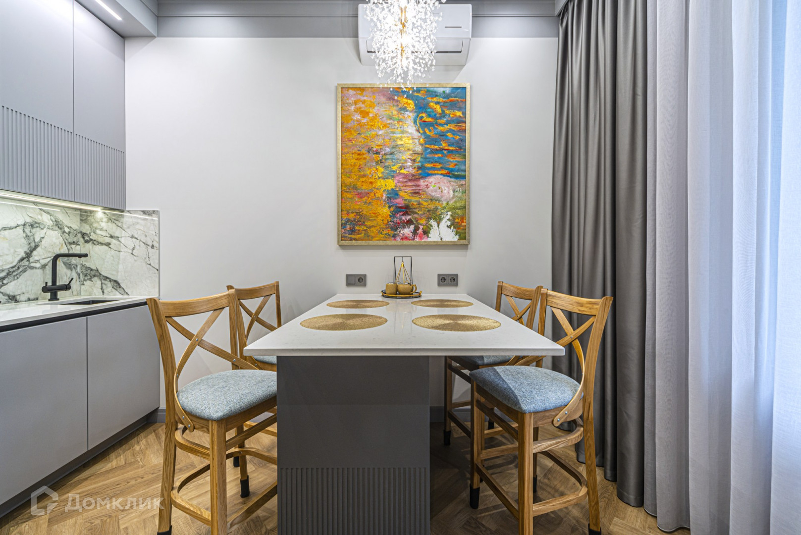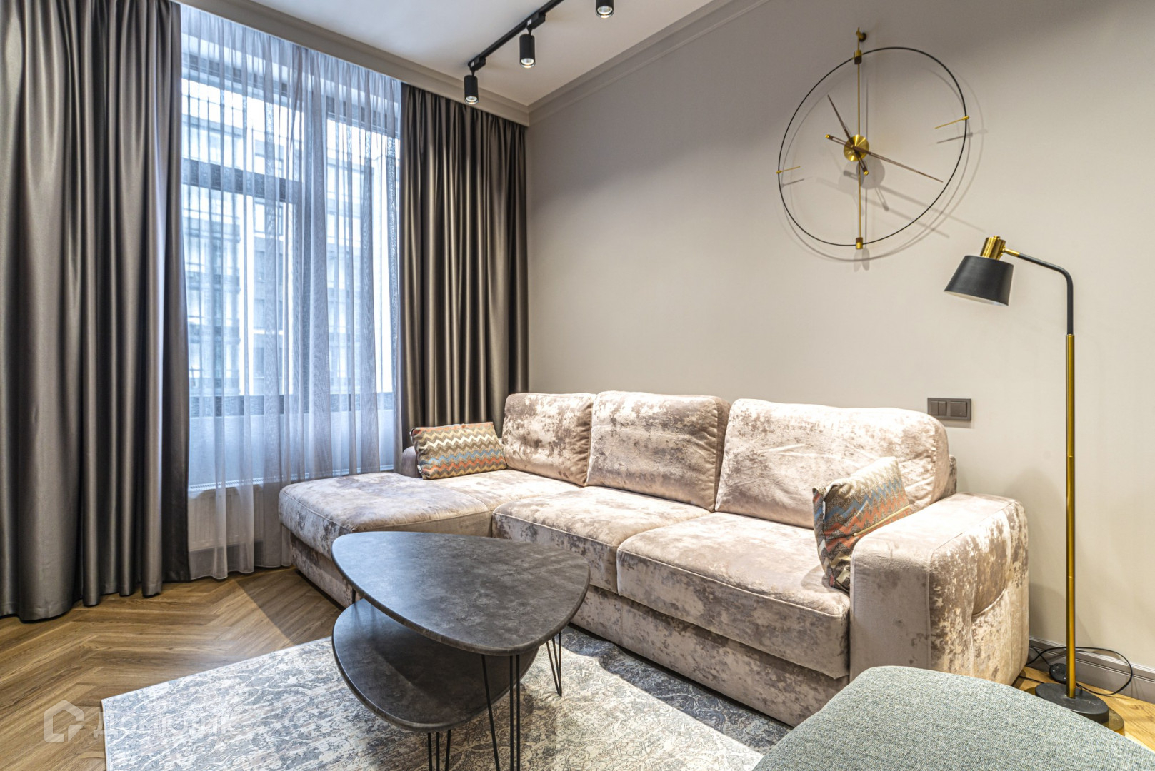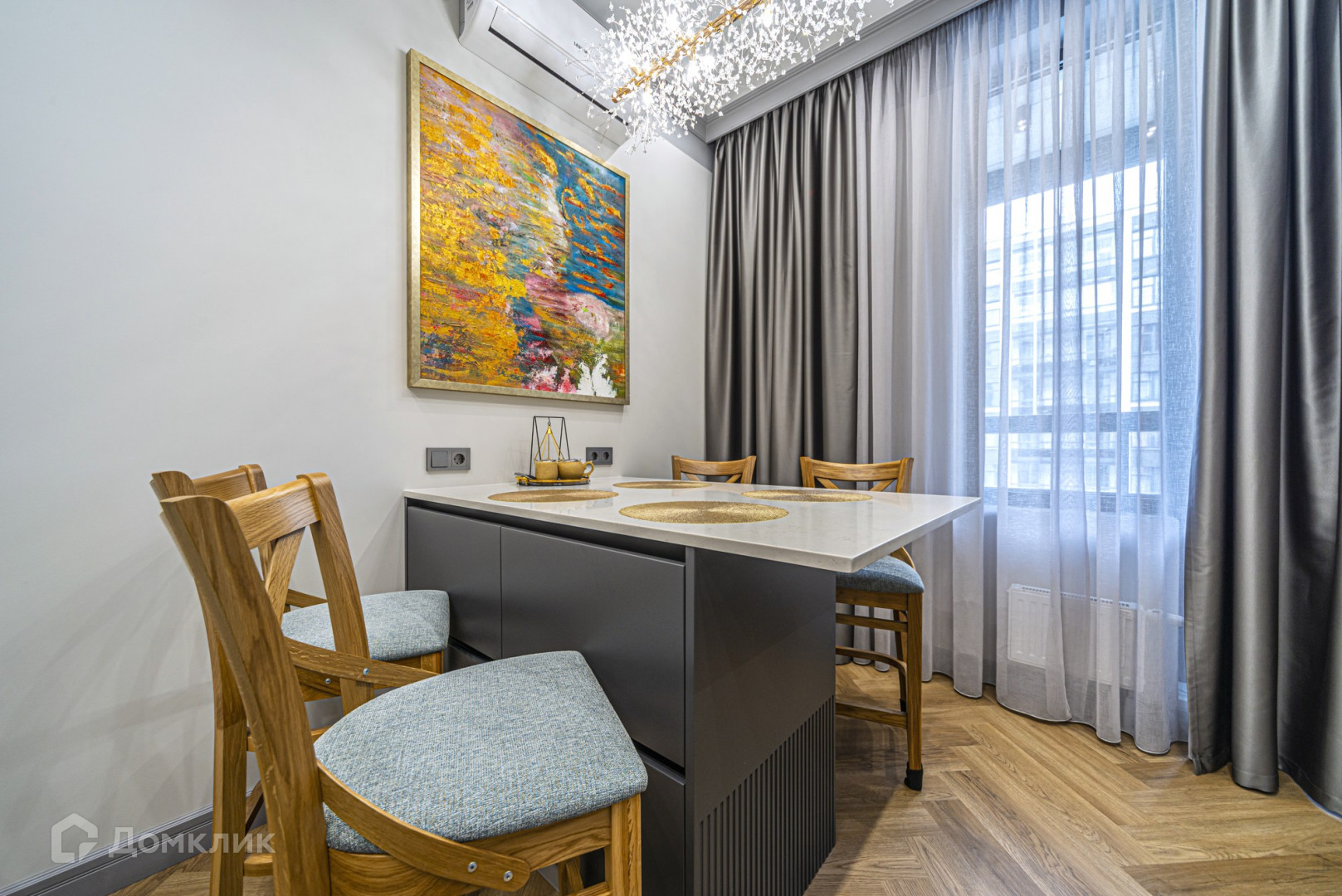 В квартире выполнен дизайнерский ремонт, есть вся необходимая мебель и бытовая техника. Есть кондиционер. Без животных.