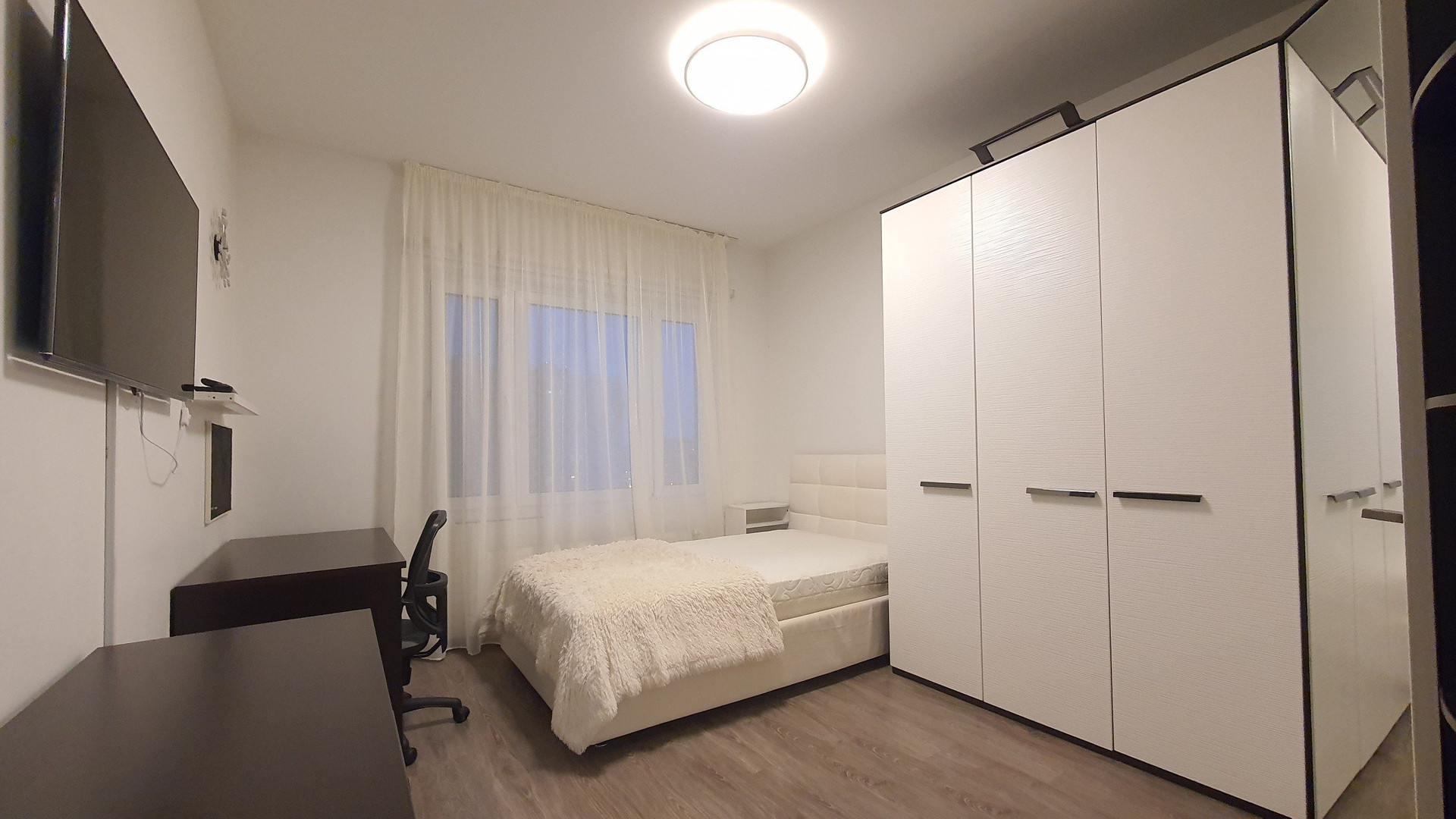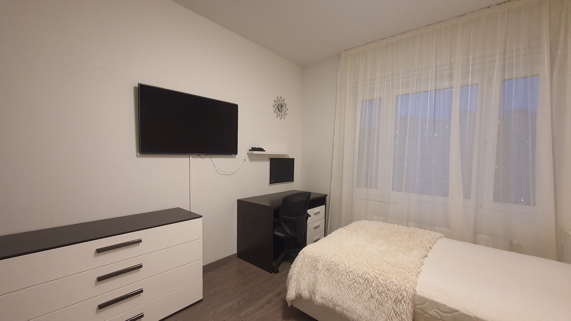 Спальня 16м, оснащена 1,5 кроватью. Можно заменить на полноценную 2-спальную по согласованию. Также имеется телевизор!