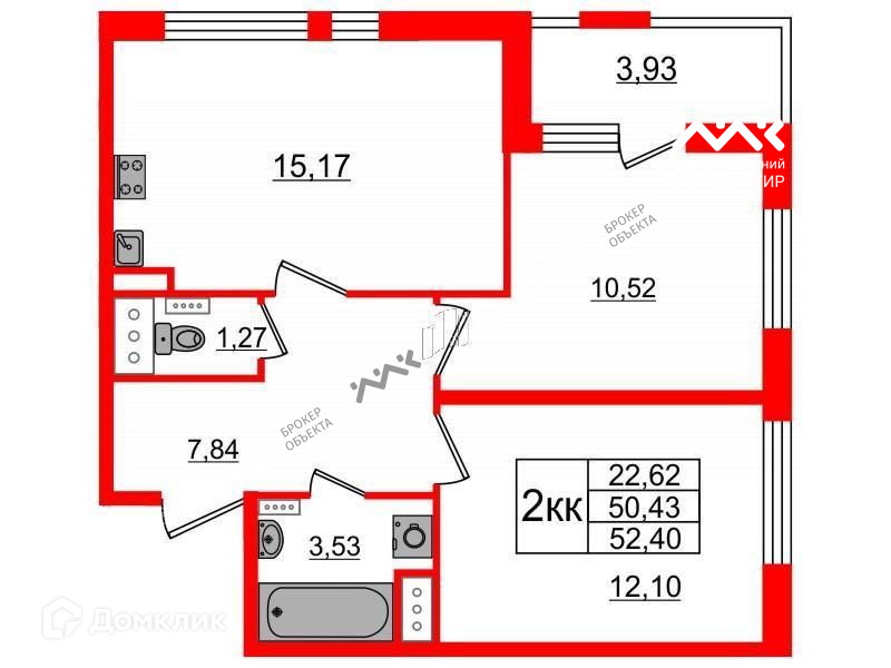 Общая площадь 54 м2