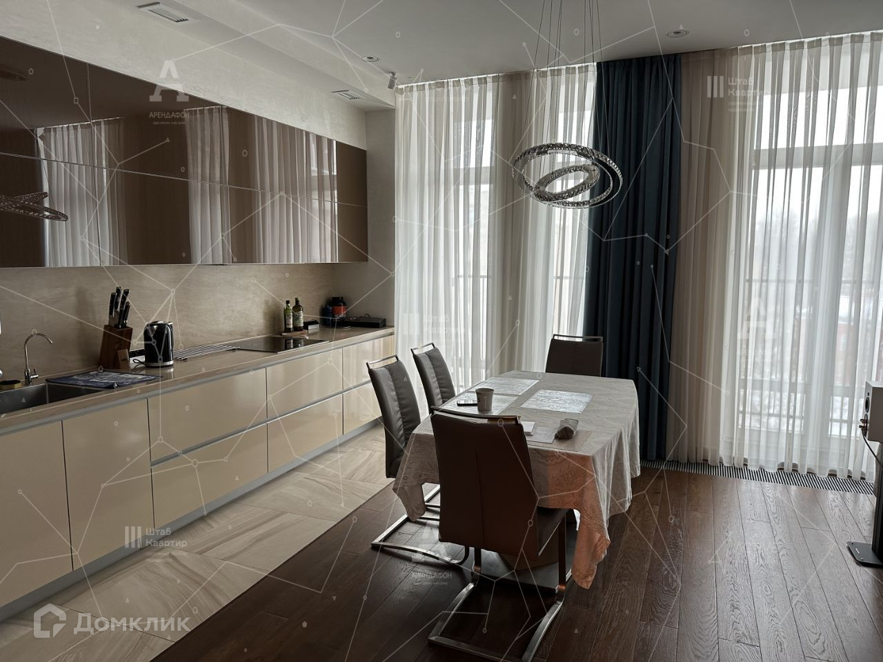 Квартира укомплектована самой современной мебелью и техникой: Встроенная мебель на кухне - Neff, стиральная и сушка Miele (постирочная комната), сантехника Toto и Grohe, централизованные кондиционеры Mitsubishi, ТВ и проектор Sony (домашний кинотеатр), ортопедический матрас и очень удобная мягкая мебель. Установлены сигнализация, сейф и система приточной вентиляции с фильтрами и функцией подогрева воздуха. В открытии окон нет необходимости от слова совсем.  Многоуровневая система очистки воды. Пол натуральное дерево и керамогранит с подогревом. Во всей квартире многоуровневое освещение.
