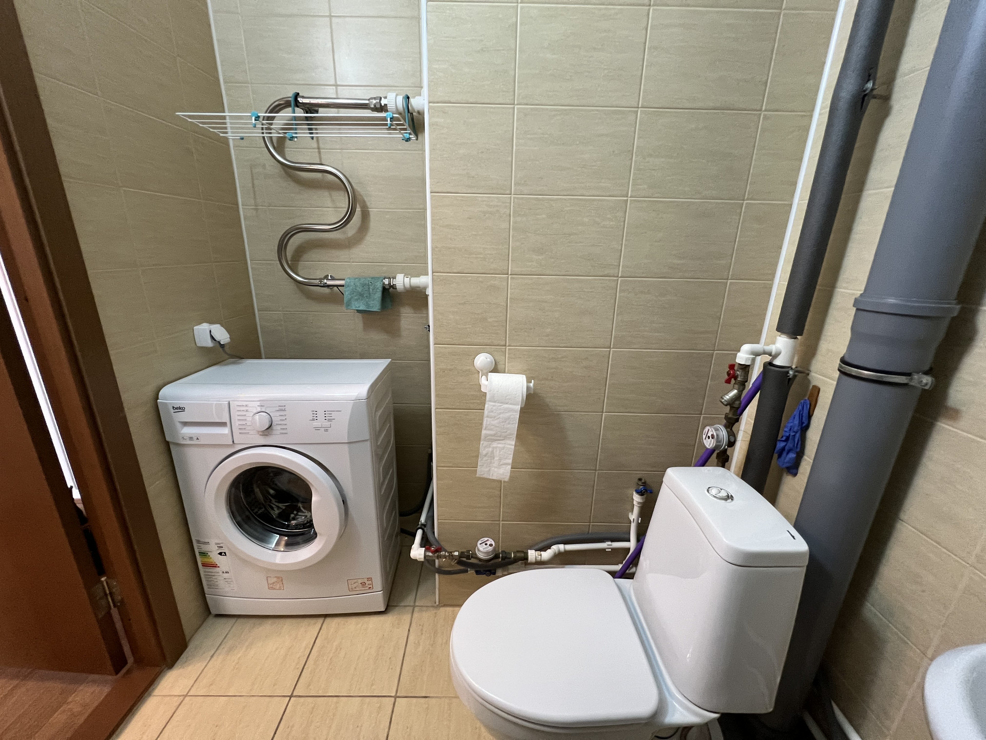 Есть сушилка для белья, утюг и гладильная доска.