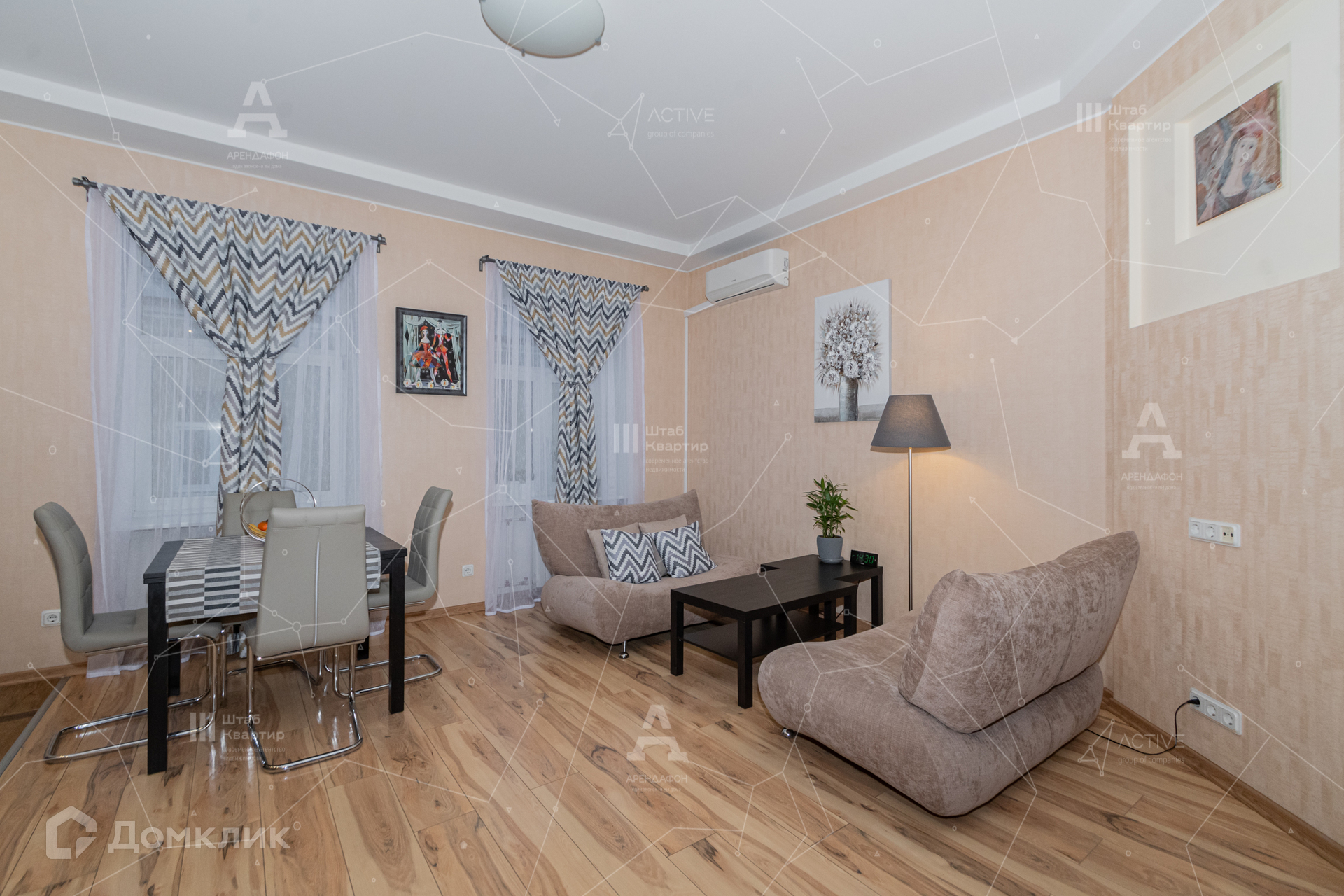 Квартира расположена во втором дворе, очень тихо внутри, не слышан шум города. Окна обращены на юг, в летнее можно пользоваться кондиционером.