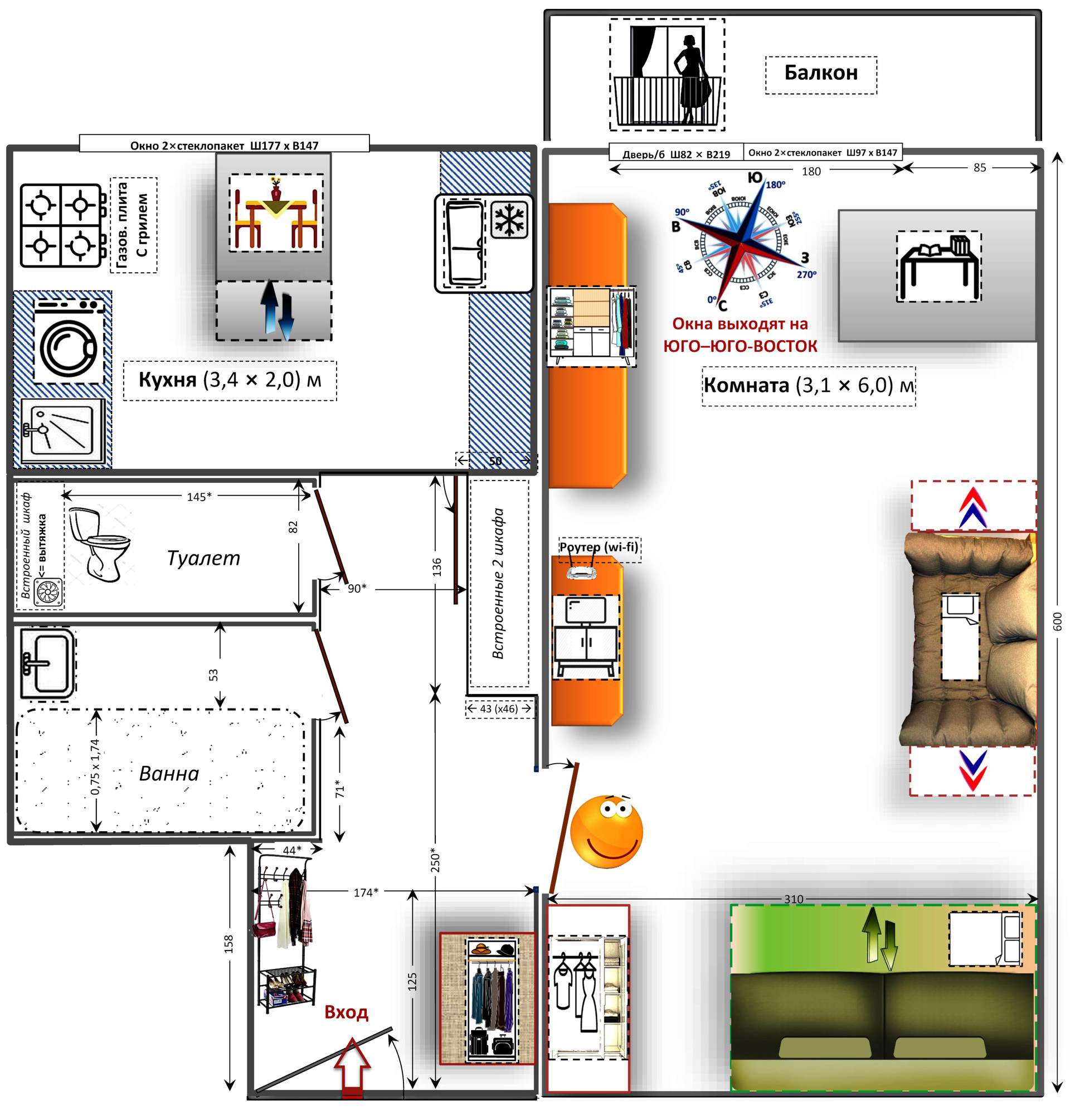 +Множество лайфхаков, или “hand made” приспособлений для комфорта жизни, например, Арендатор сможет рассмотреть себя со спины при помощи системы зеркал