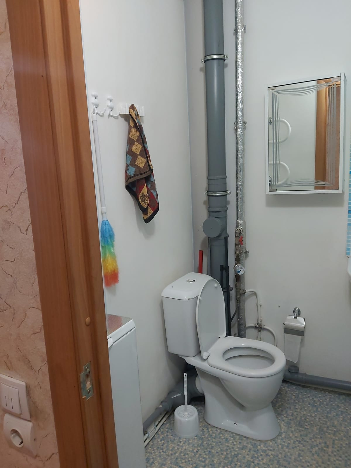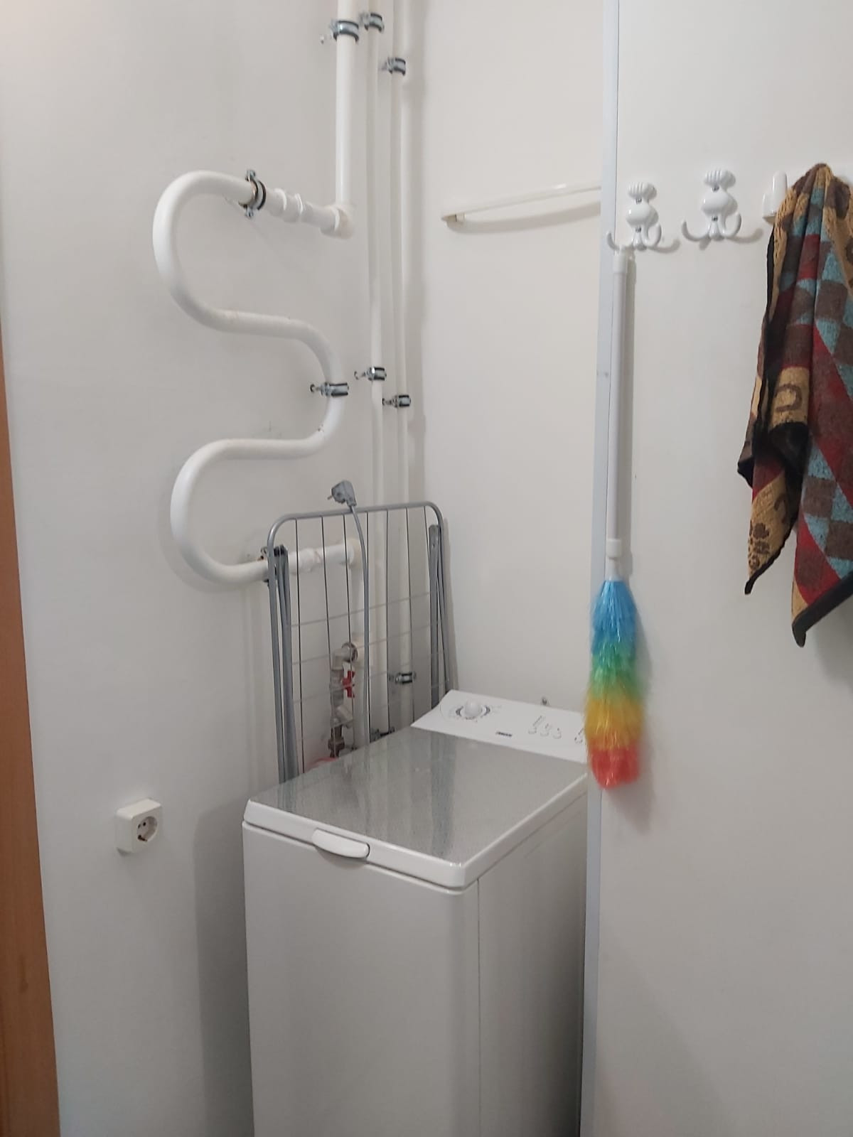 Санузел совмещенный: есть стиральная машинка-автомат, сушилка для белья настенная над ванной, сушилка раскладная, полотенцесушитель.