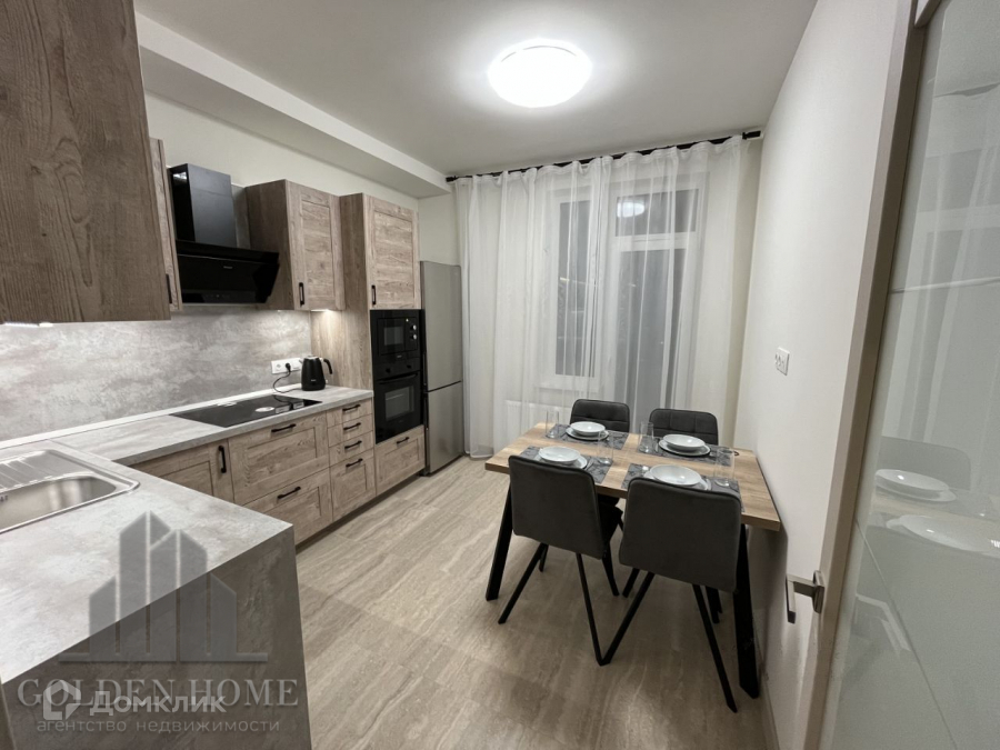 На кухне вся техника встроенная. Комплект новой посуды. Выход на застекленную лоджию. В комнатах минимально мебели, только нужные вещи. Это создает ощущение пространства и свободы.
