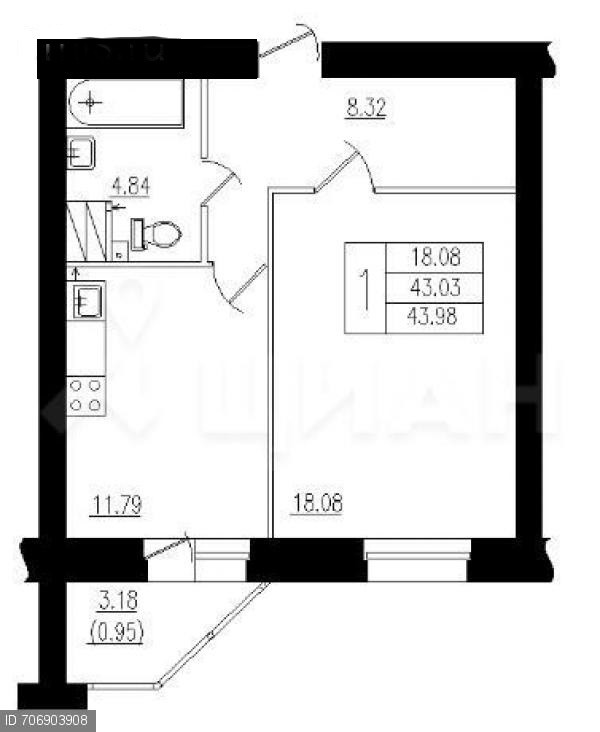 Общая площадь 43 м2