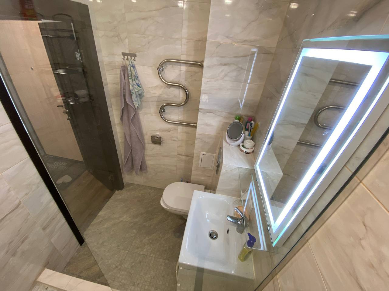 ✅Установлен натяжной многоточечный потолок, Радиаторы с терморегулятором Вся сантехника в фирмы CHROME