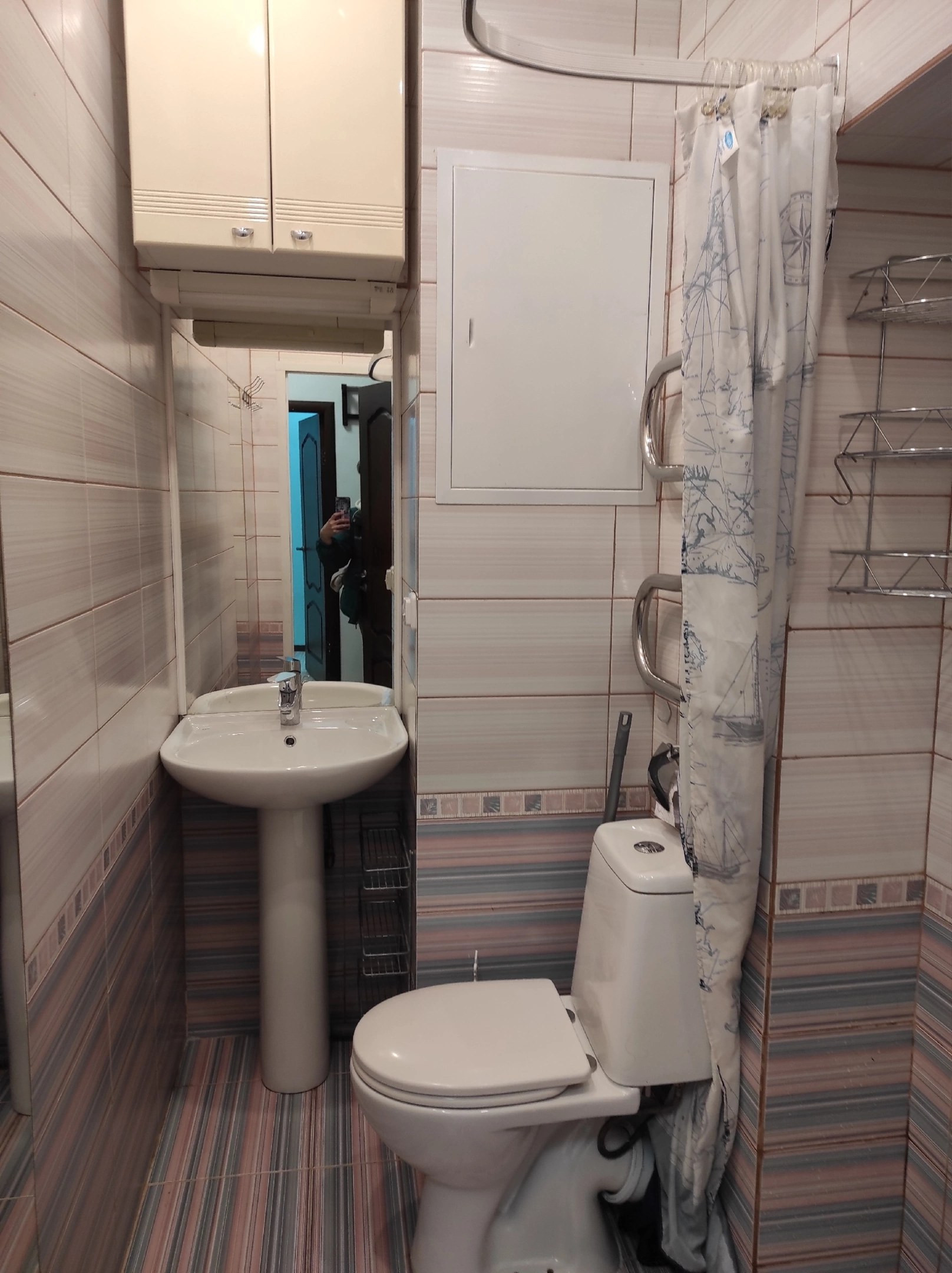 Во всей квартире достаточно мебели для комфортного проживания и хранения большого количества вещей. Душ в санузле.