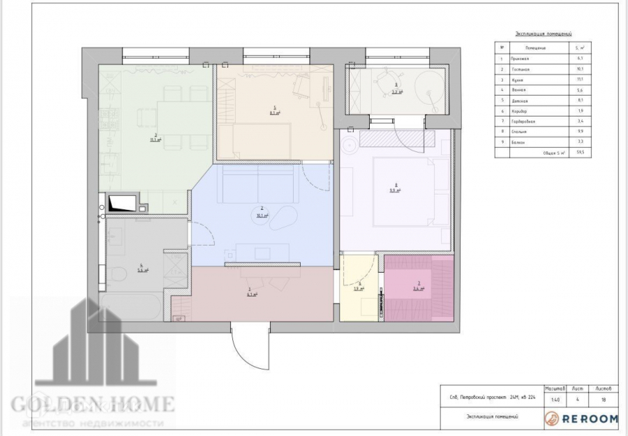 Общая площадь 60 м2