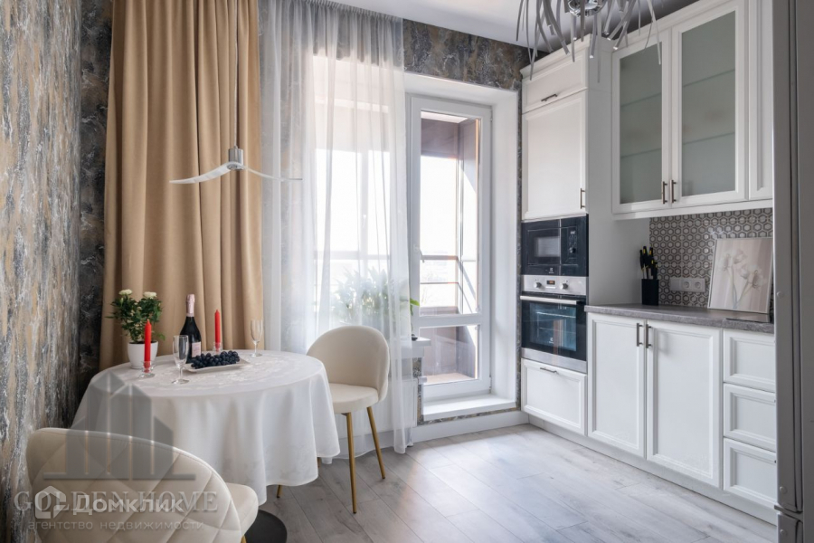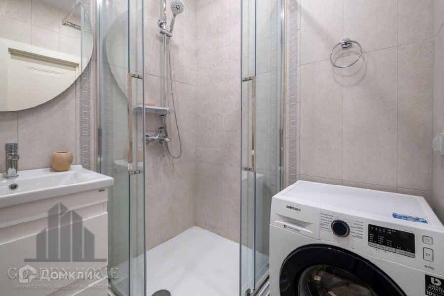 Полностью меблирована и технически оснащена. Посудомоечная машина, встроенные СВЧ и духовой шкаф, телевизор, просторный холодильник, в ванной комнате  душевая кабина 90 х 90 с тропическим душем, теплый пол, стиральная машина, в комнате  удобный диван и кресло, просторный шкаф, гостиная с телевизором.