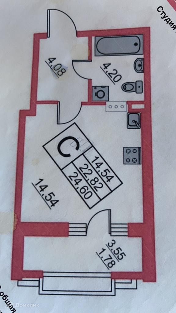 Квартира студия, 25 м2, в аренду на длительный срок в Санкт-Петербурге, Плесецкая улица, 2