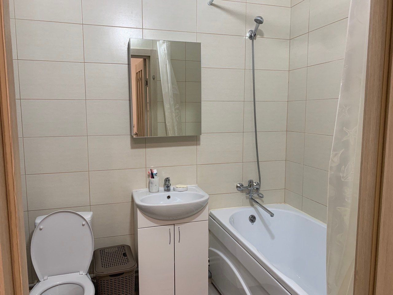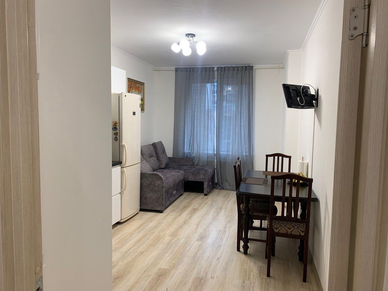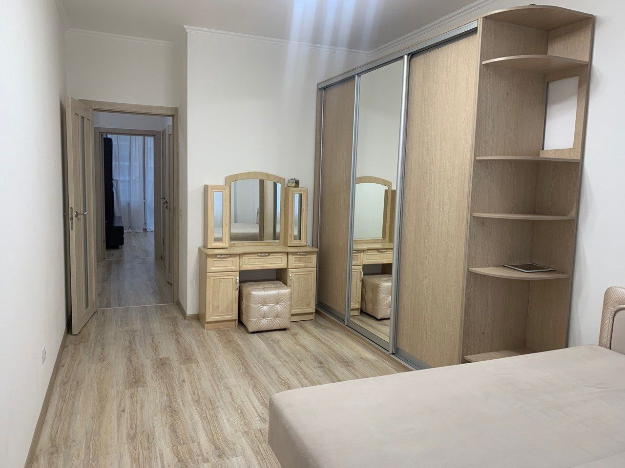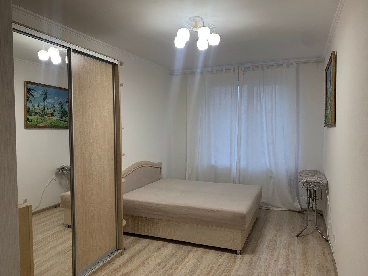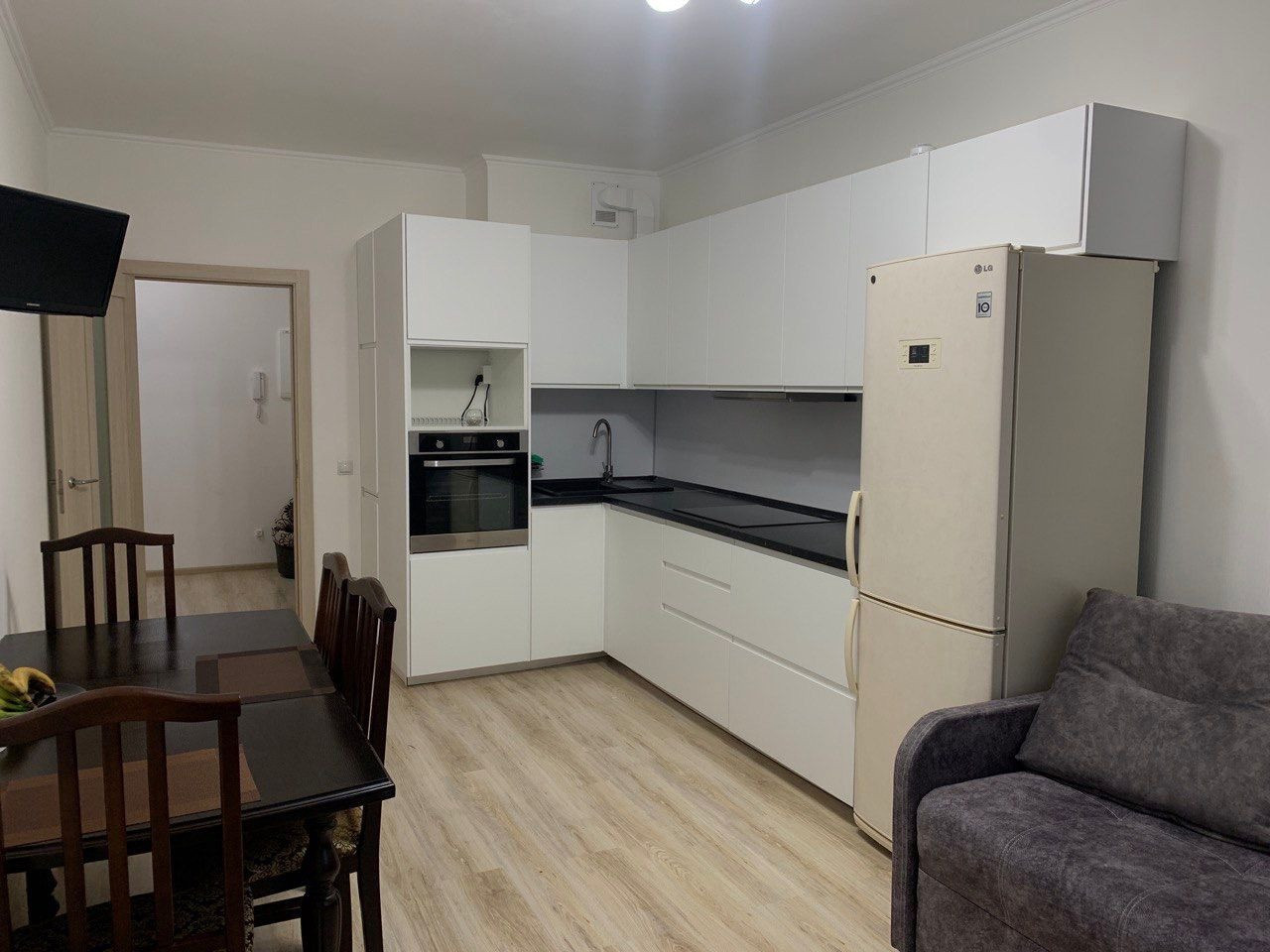 Новая квартира, новая хорошая мебель, вся техника (два телевизора, стиральная машина, утюг, хороший духовой шкаф и электроплита, пылесос, чайник), гладильная доска (нормальная), посуда, приборы в наличии.