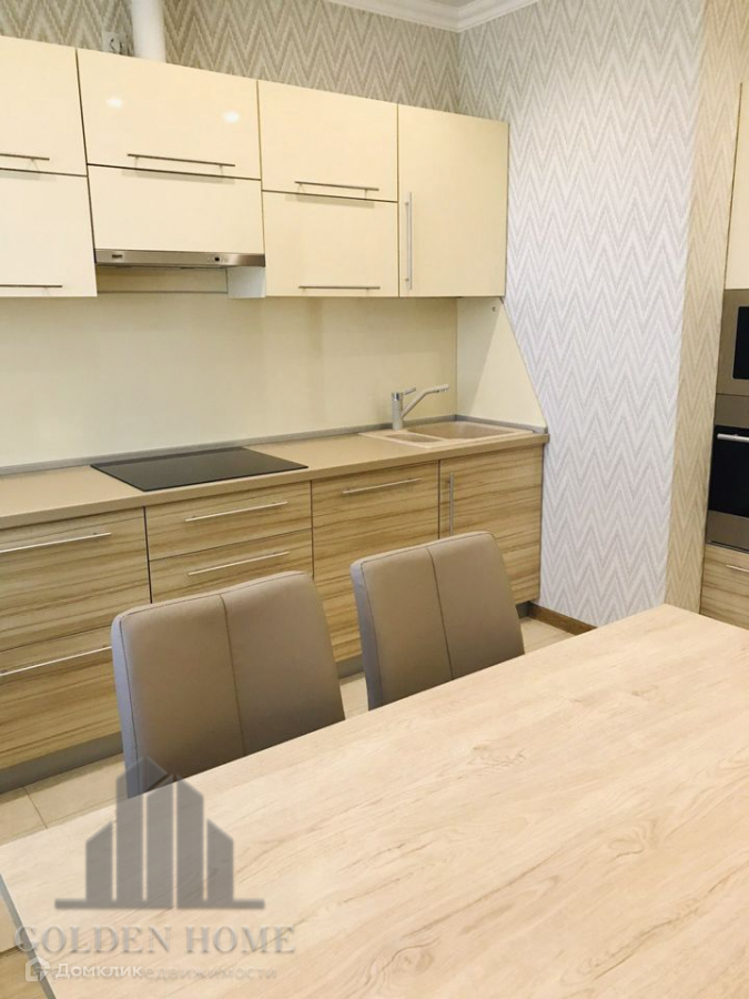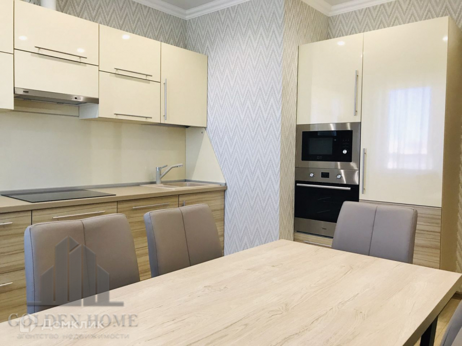 Кухня - кухонный гарнитур, с полным комплектом встраиваемой бытовой техники, обеденный стол, стулья.