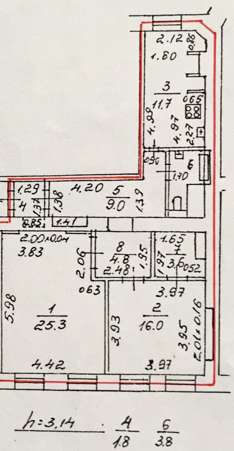 Высота потолков 3.14 м