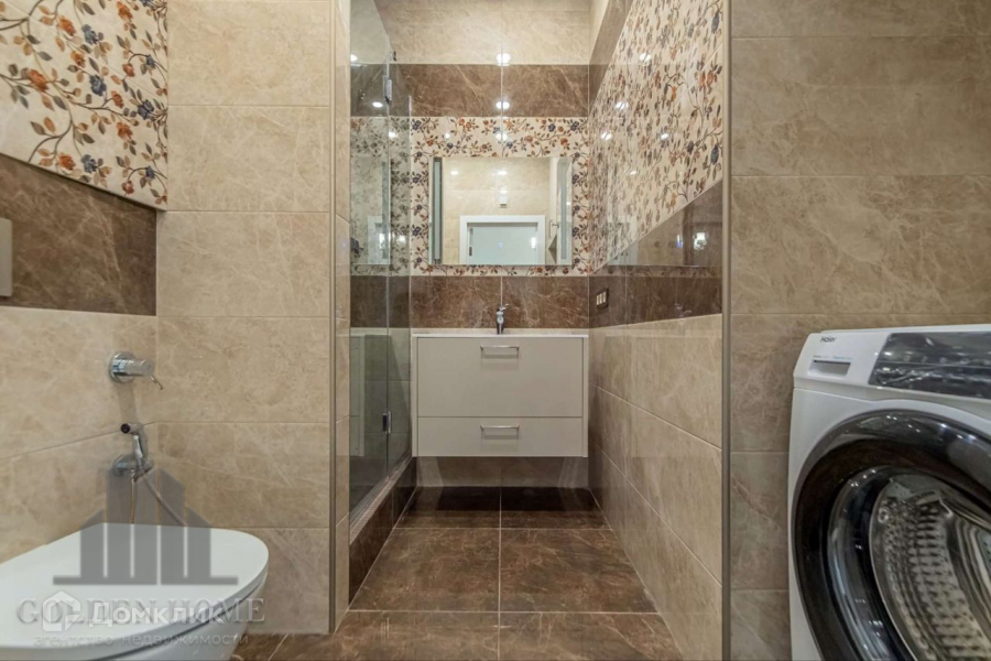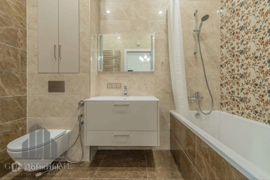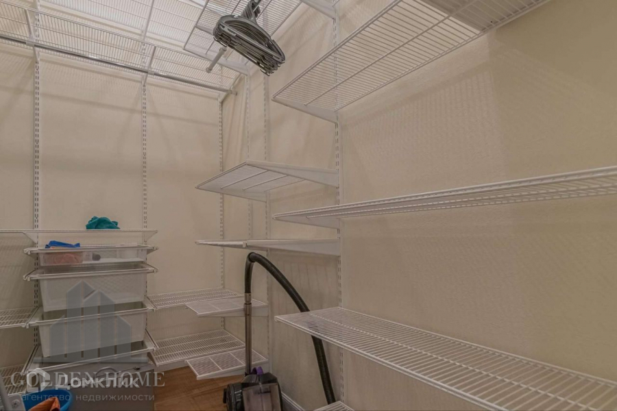 Есть гардеробная комната. В квартире два санузла: в одном ванна, в другом душ. Лоджия утепленная.