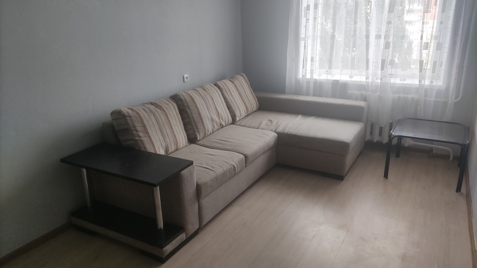Мебель: угловой диван (раскладывается в 2х спальное место), шкаф, комод, журнальный столик, оборудованная кухня, стиральная машина, холодильник, новая газовая плита. Установлены водяные счетчики. Электрический счетчик: день-ночь.