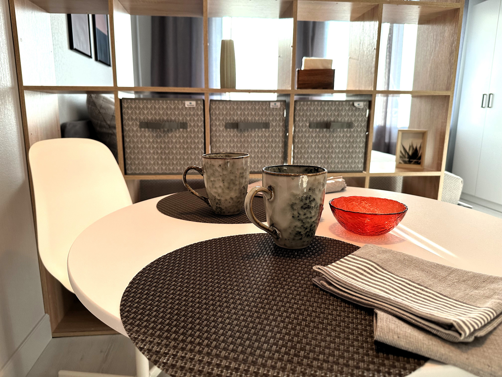 •    студия зонирована: отдельно кухня и обеденная зона, отдельно - спальная зона