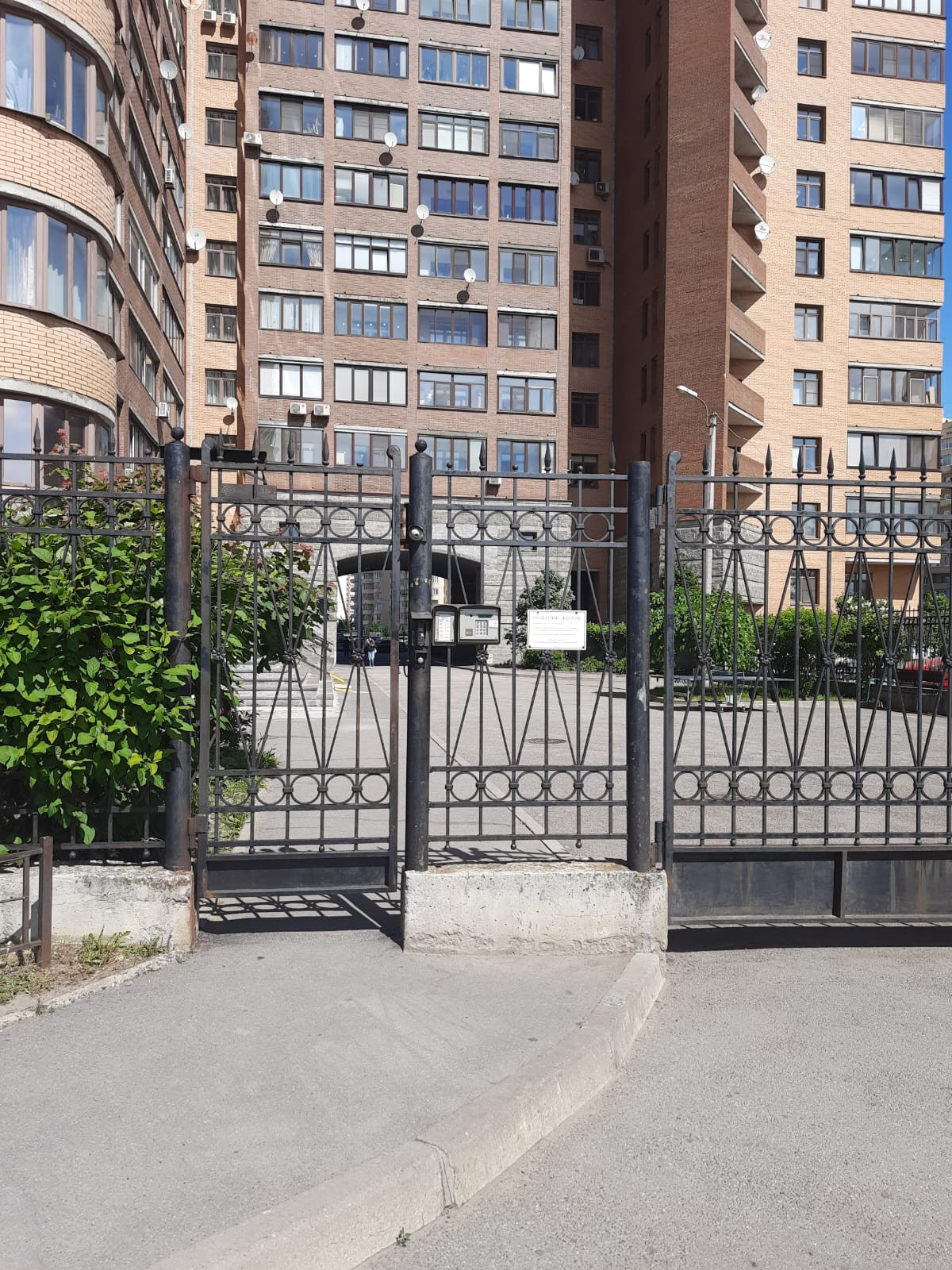 Территория дома огорожена,  въезд под шлагбаум с пульта , парковка бесплатная и рядом платная. Видеонаблюдение по всей территории , консьерж, видеонаблюдение на этажах. В зеленом тихом дворе  расположены детские площадки с качелями ,теннисный стол, скамейки  для отдыха.