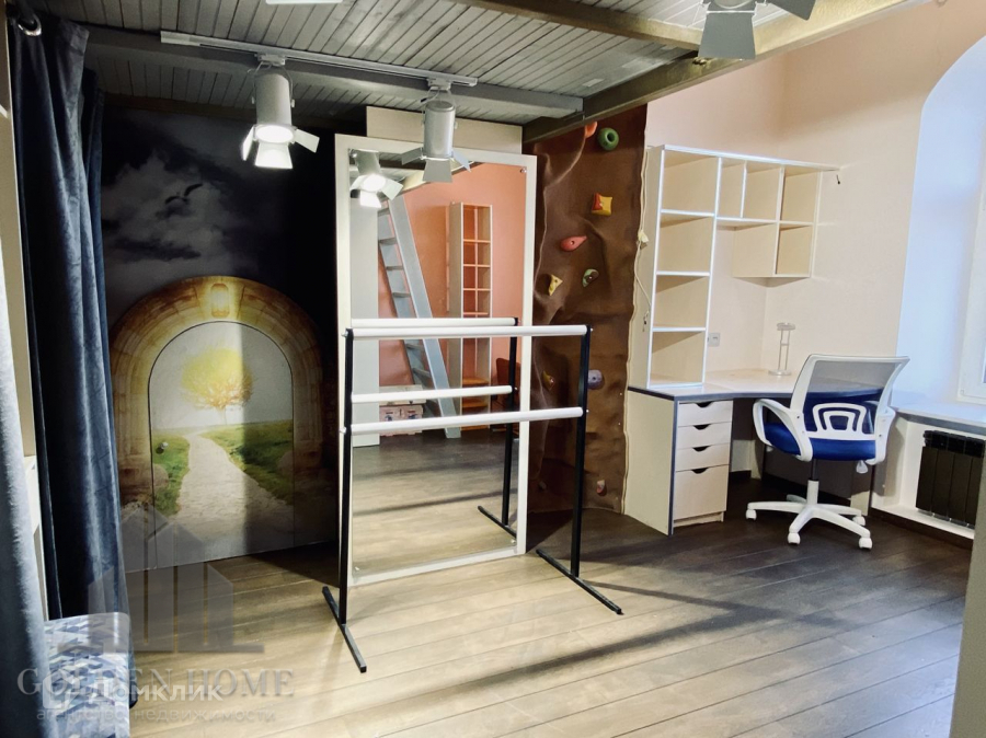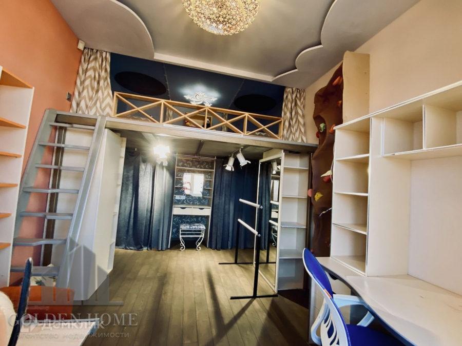 Полностью меблирована и технически оснащена. Просторная спальня с очень широкой удобной кроватью и с гардеробной комнатой. Светлая гостиная с камином (из мрамора). Удобный кабинет – библиотека. Детская – мечта каждой принцессы (возможно размещение двух принцесс). Комната для подростка – практичная, лаконичная. Полностью оснащенная кухня.