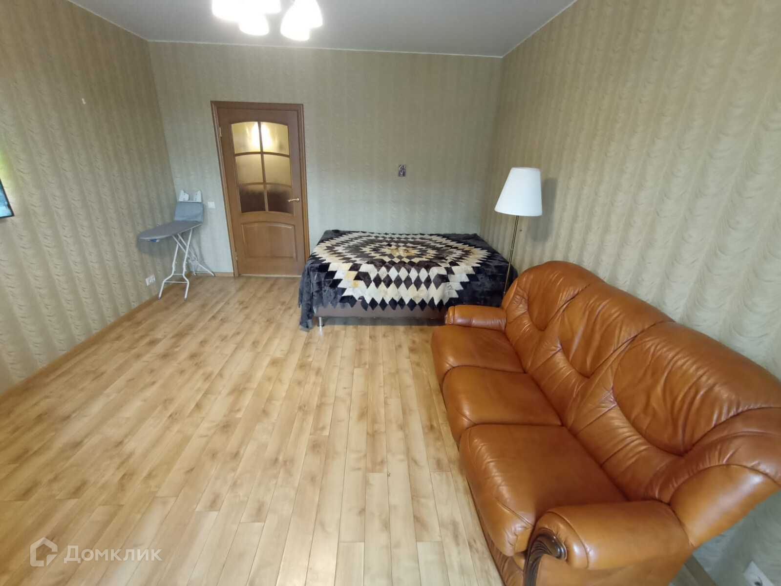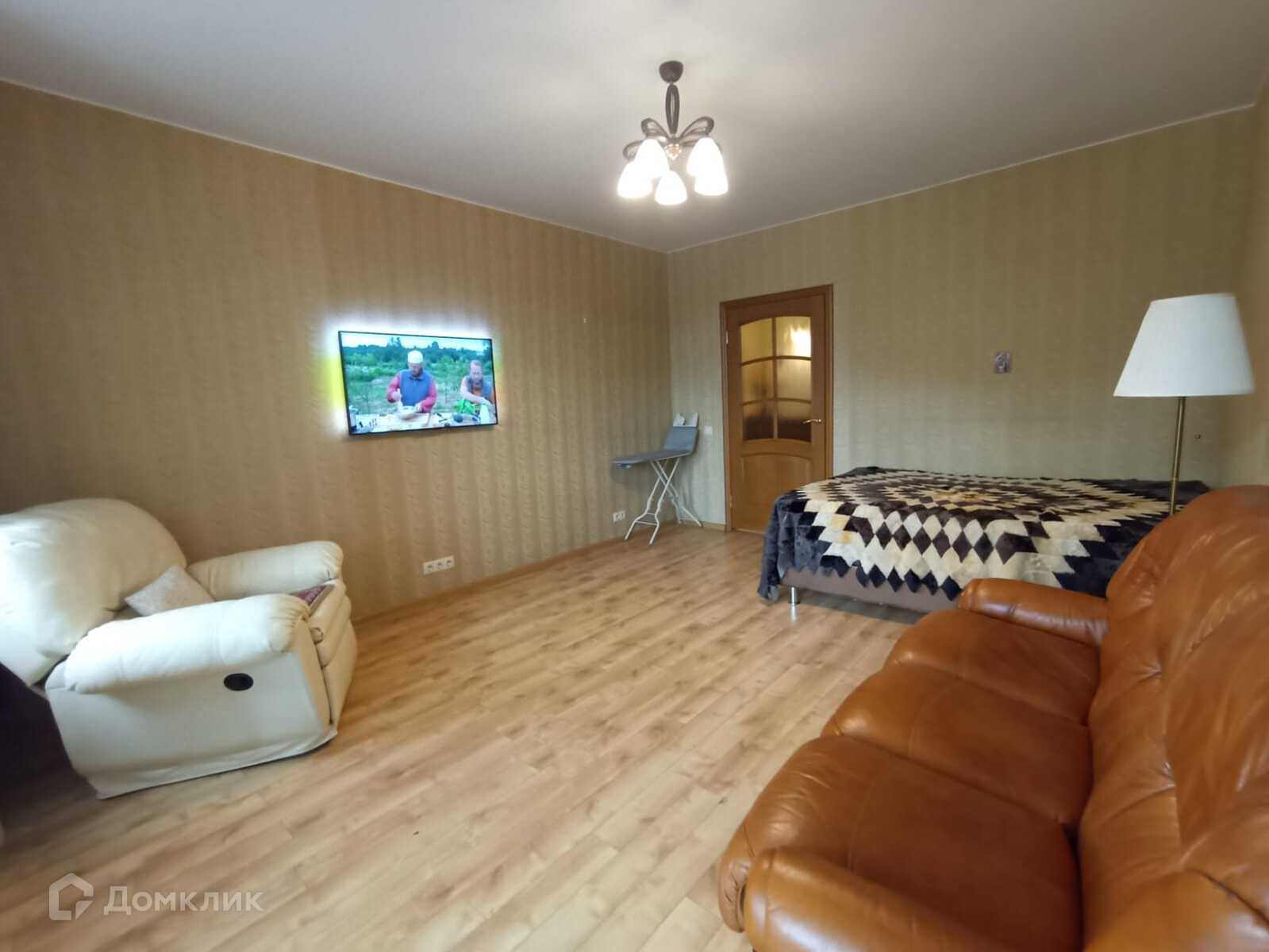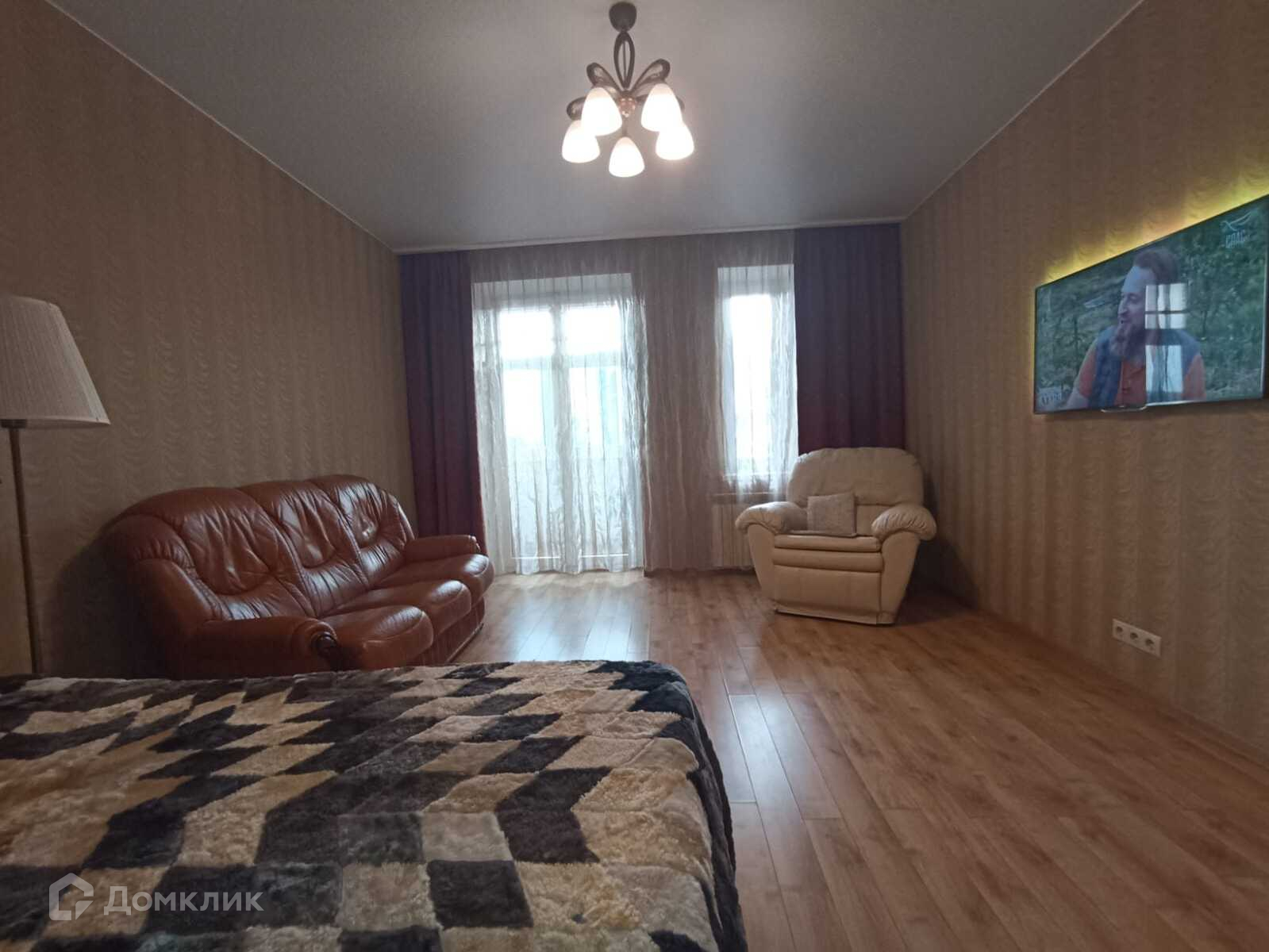 ( стоит кровать, кожаный диван, который раскладывается, очень удобное кожаное кресло),