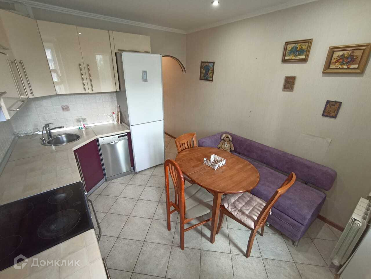 ( встроенная кухня, варочная панель, духовой шкаф, холодильник, посудомоечная машина, вытяжка, установлен фильтр для воды, обеденный стол, диван, который тоже раскладывается),