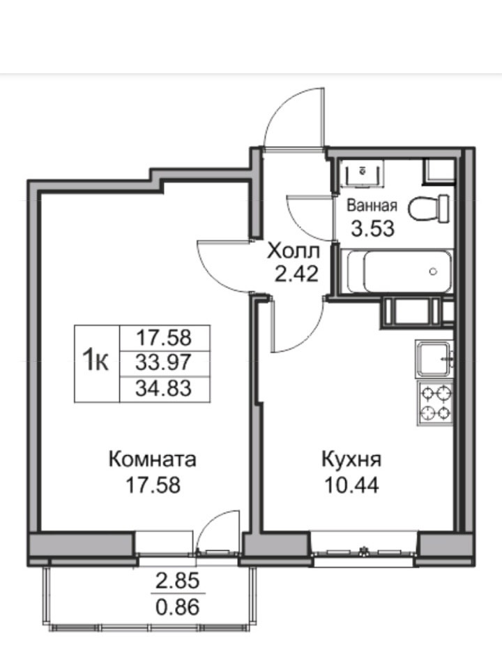 Общая площадь 34 м2