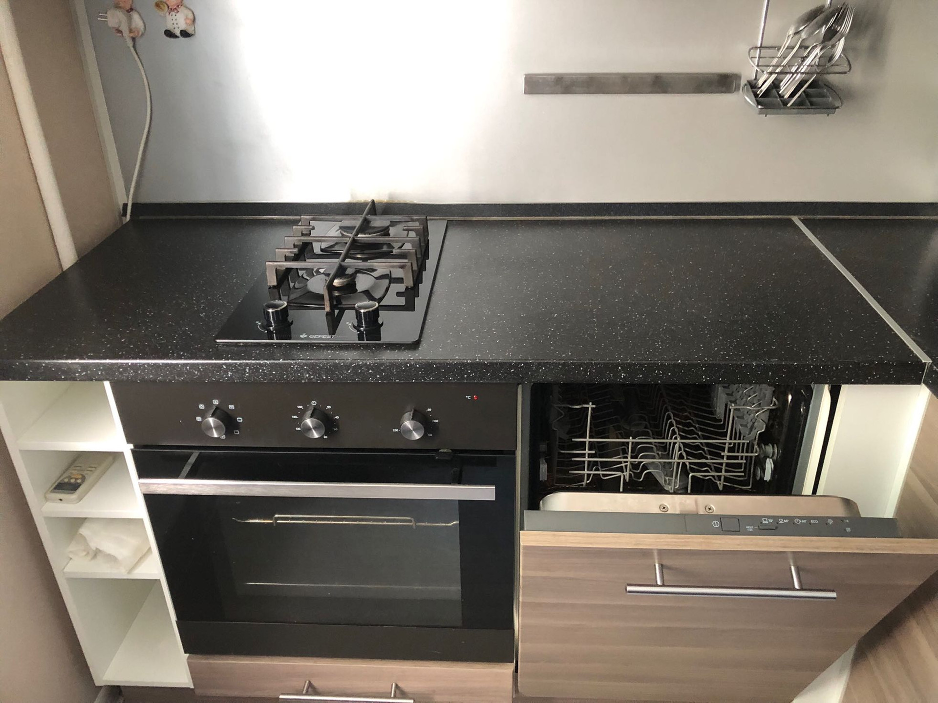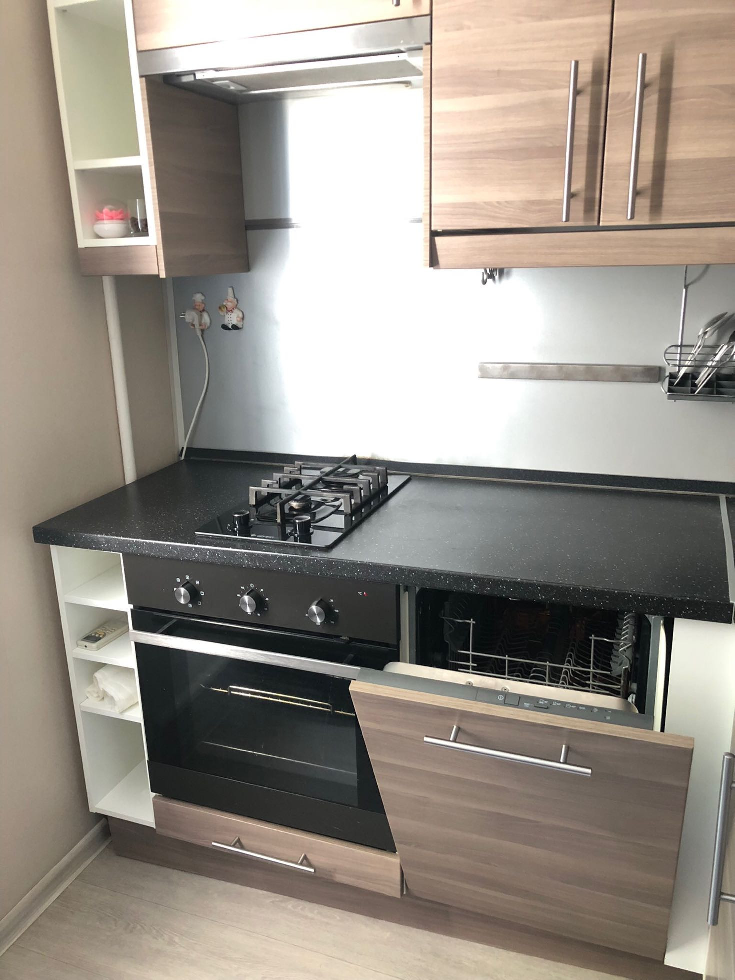 - Кондиционер, стиральная машина, посудомоечная машина, холодильник, духовой шкаф и телевизор. Вся техника современная и работает как часики.