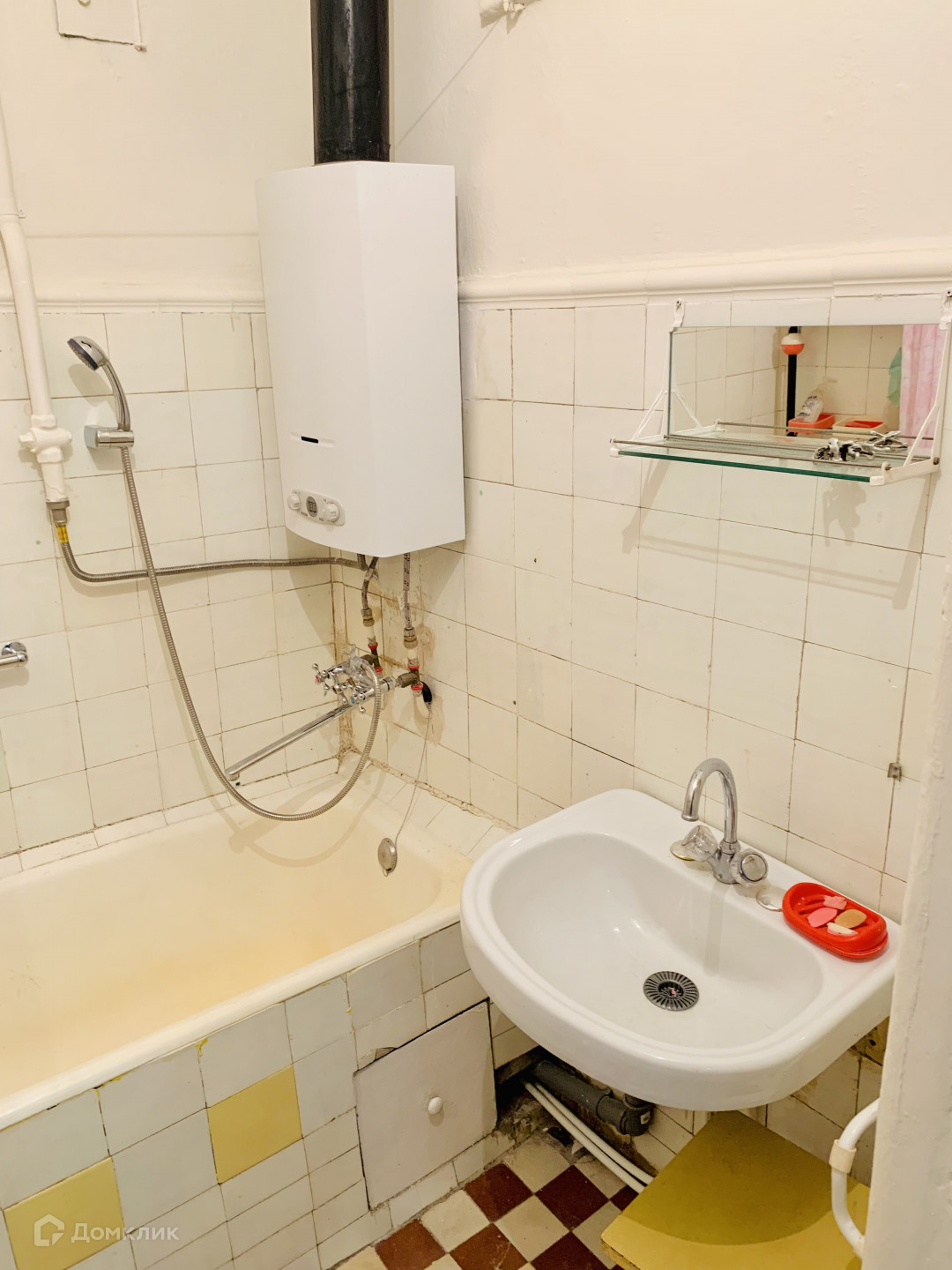 Горячая вода через газовую колонку.